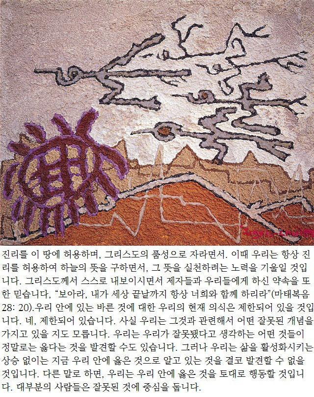 우리는 우리가 잘못됐다고 생각하는 어떤 것들이 정말로는 옳다는 것을 발견할 수도 있습니다. 그러나 우리는 삶을 활성화시키는 상승 없이는 지금 우리 안에 옳은 것으로 알고 있는 것을 결코 발견할 수 없을 것입니다. 다른 말로 하면, 우리는 우리 안에 옳은 것을 토대로 행동할 것입니다. 대부분의 사람들은 잘못된 것에 중심을 둡니다.