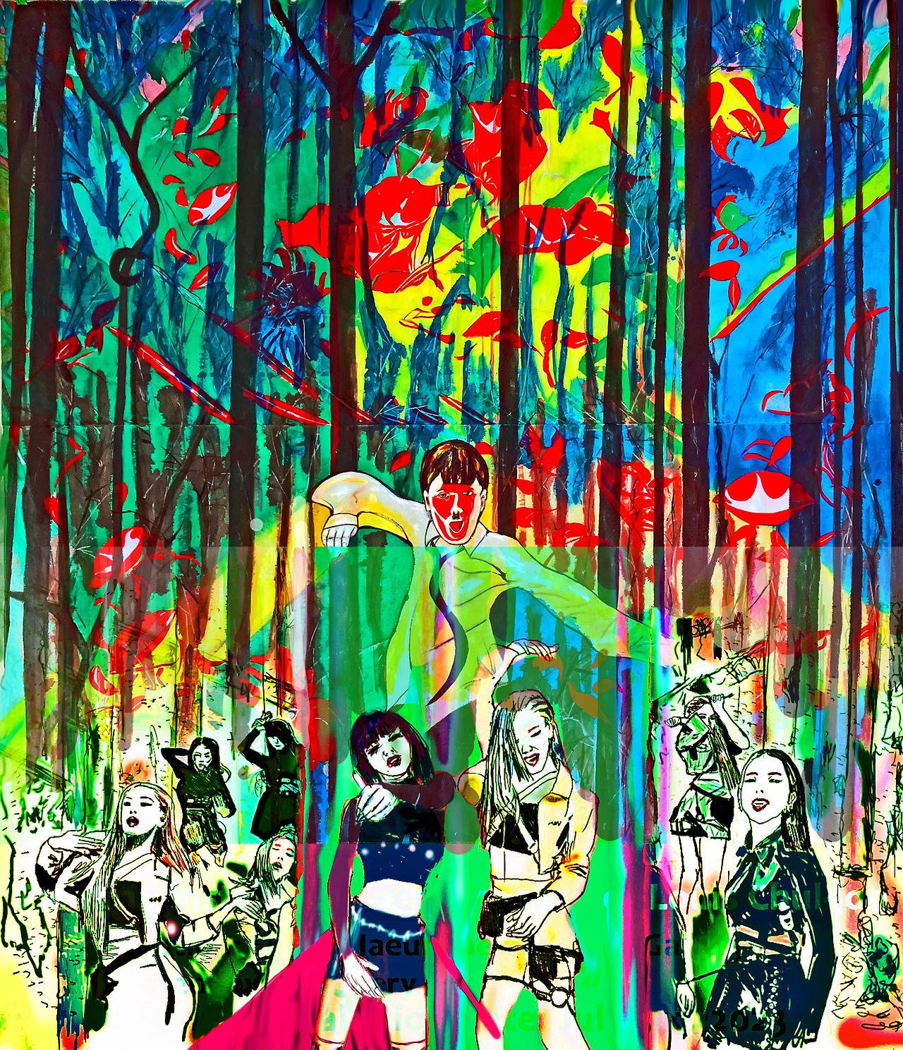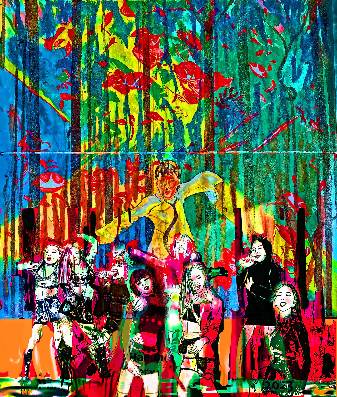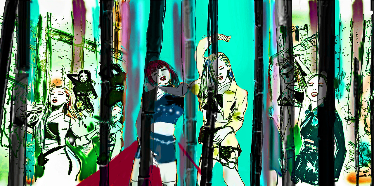 Contemporary Art Work: Abstract Painting with Treacherous Conceptual Art: Louis Chul-joo Choi, bamboo forest 93-BLACKPINK Participates in Lady Gaga's "Sour Candy“, a hand-painted picture on a computer/ Reinterpreting cartoon news review, which uses modern art abstract painting as treacherous conceptual art, as a conceptual artist's work