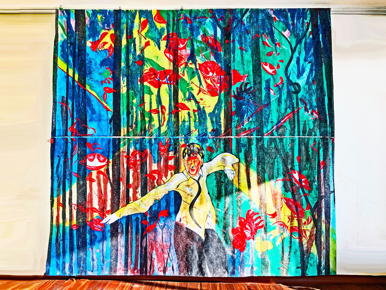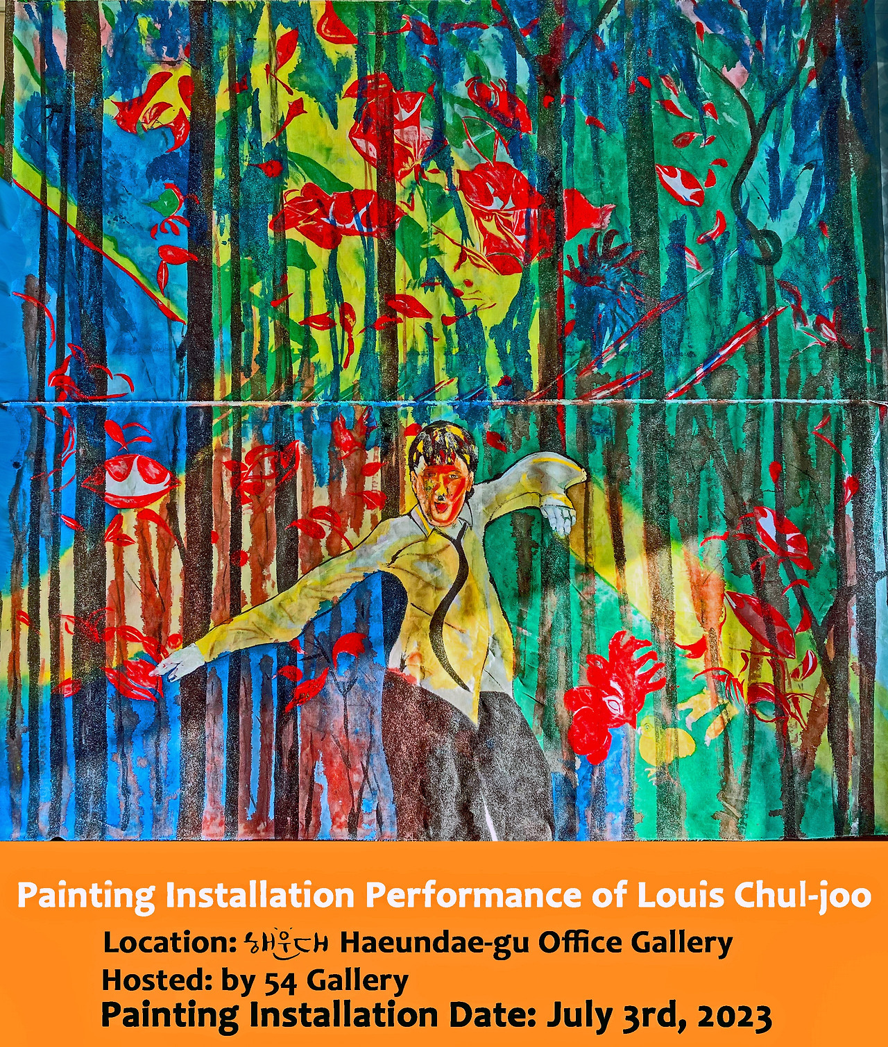Louis Chul-joo Choi, morning glory window 2024-1-back, 223X227cm, acrylic and composite materials on cloth, 2024 / Louis Choi chuljoo's Art movement Abstract painting "Painting Installation Performance" Exhibition poster An image of desire based on the cartoon review concept as an object ɑ of the concept of desire, 202401
