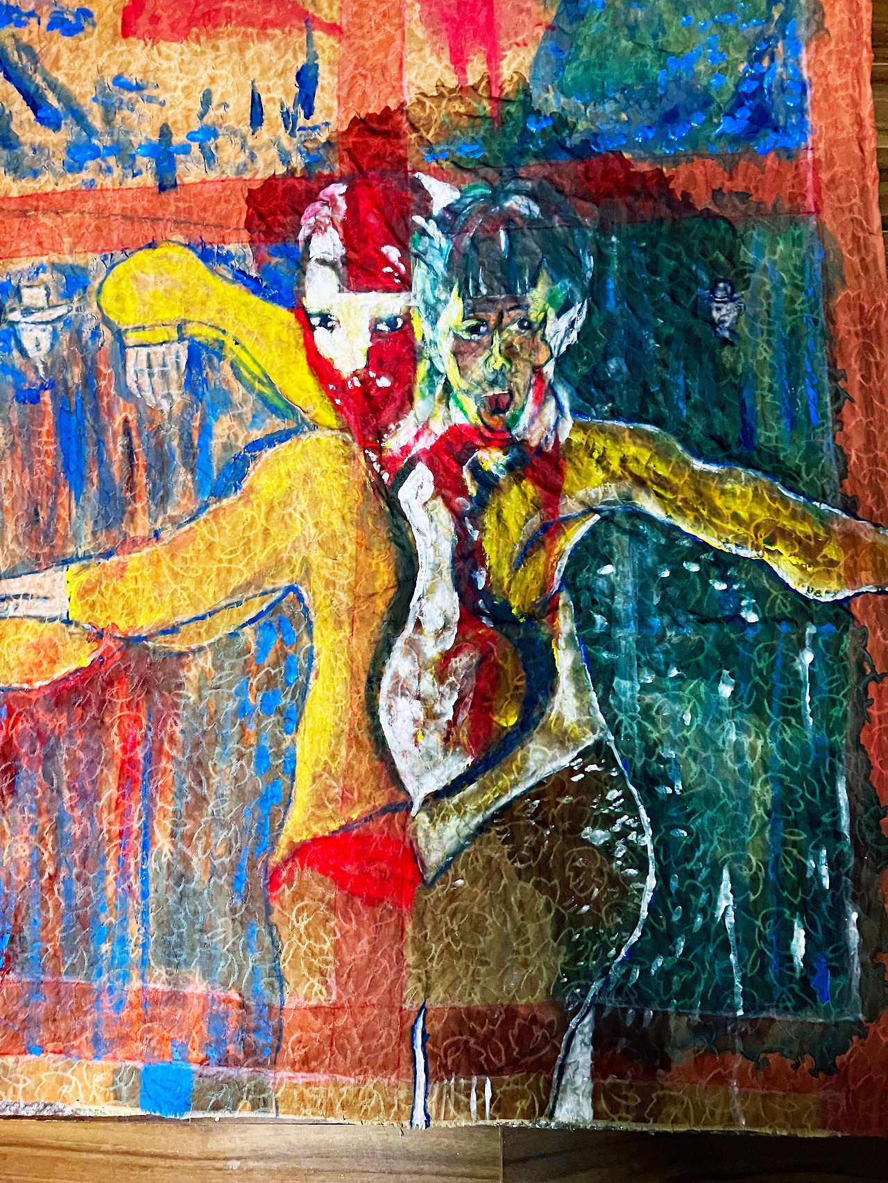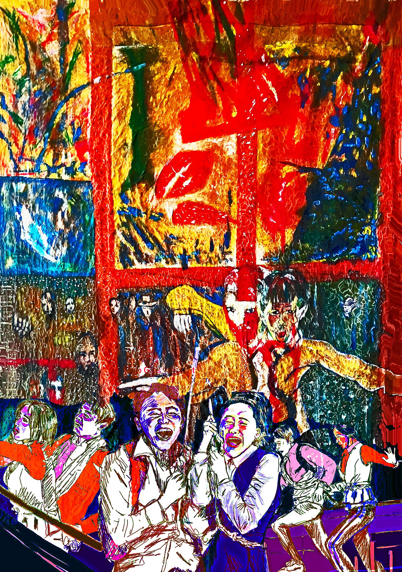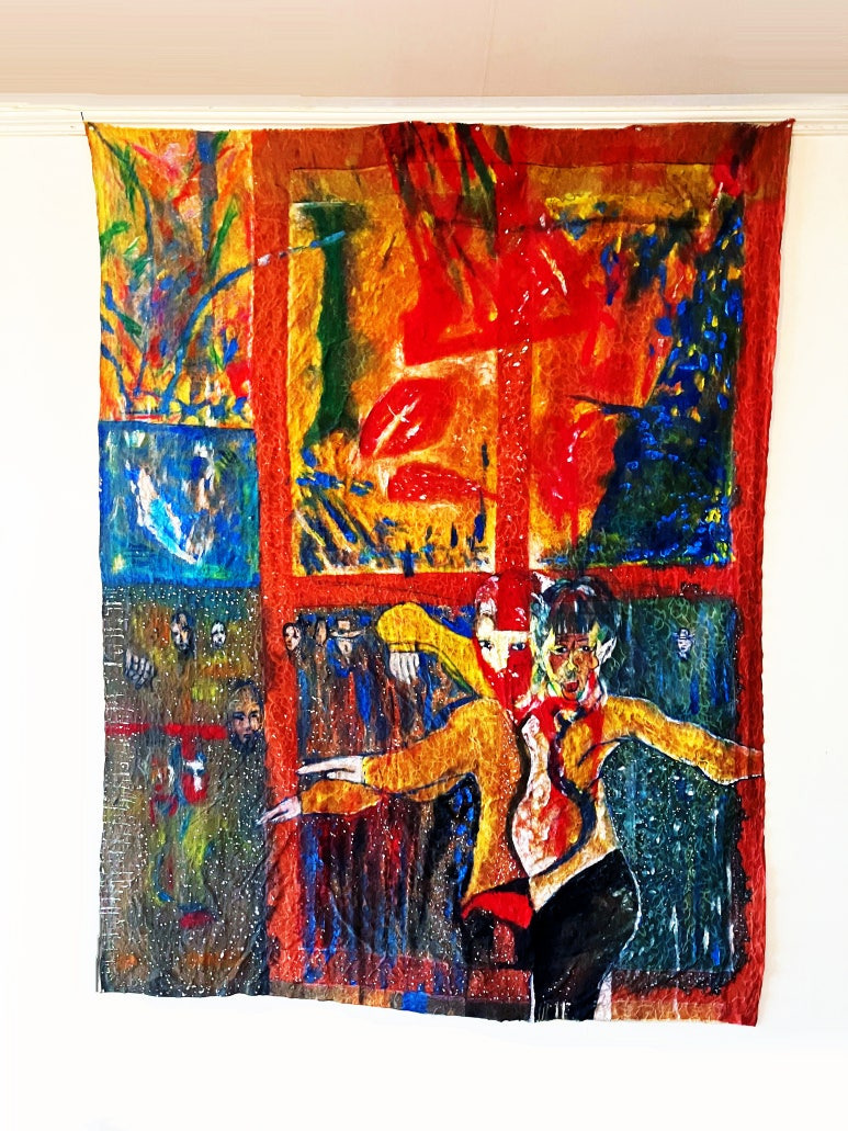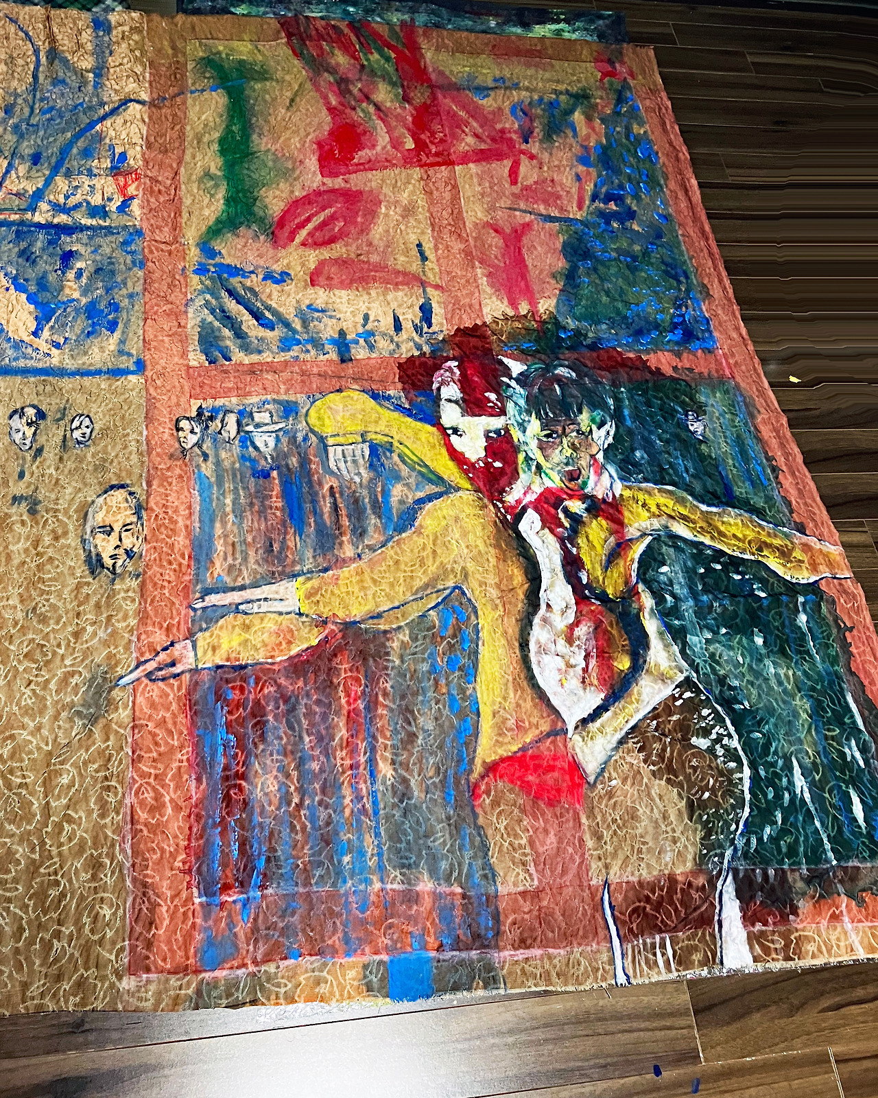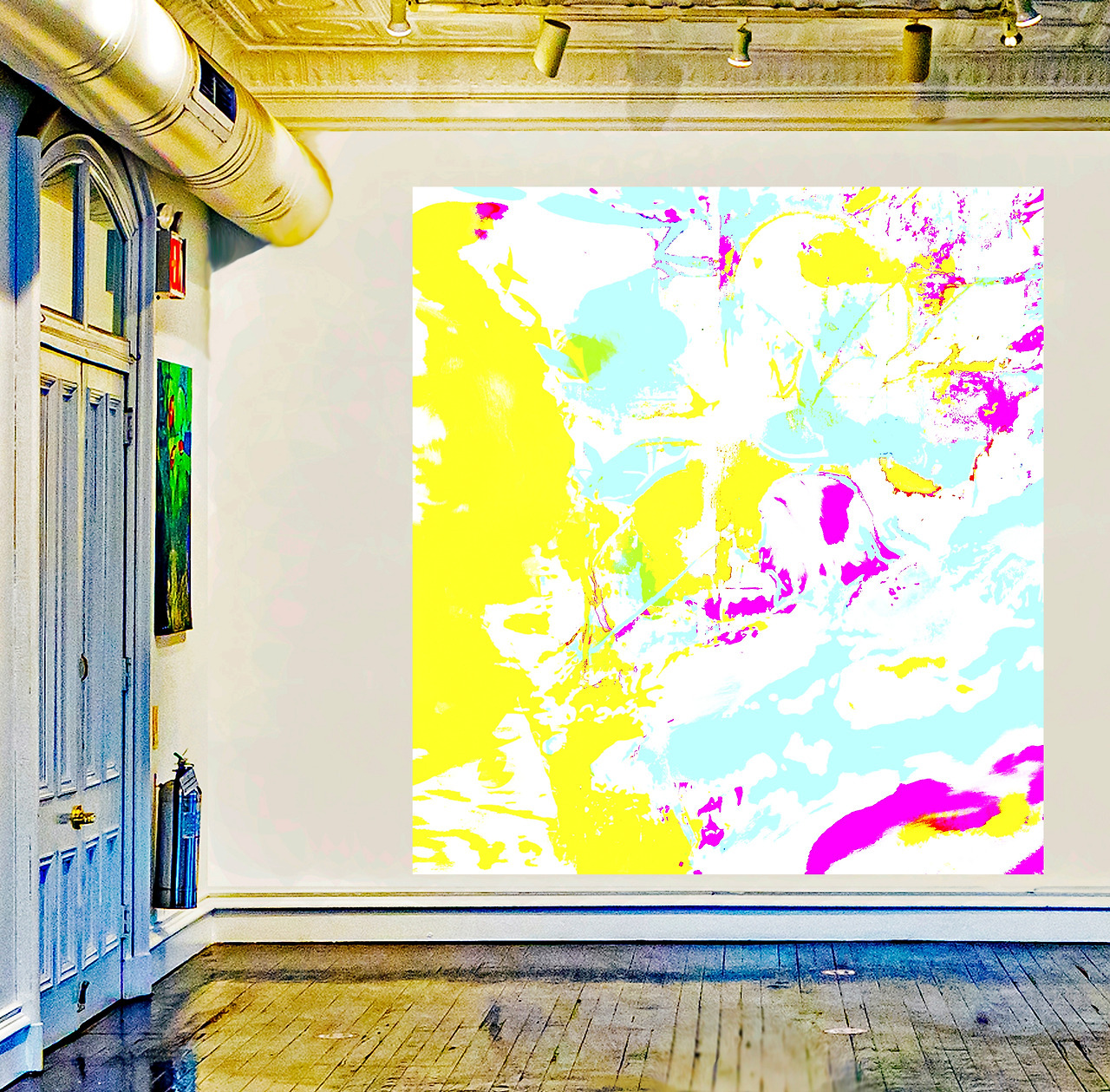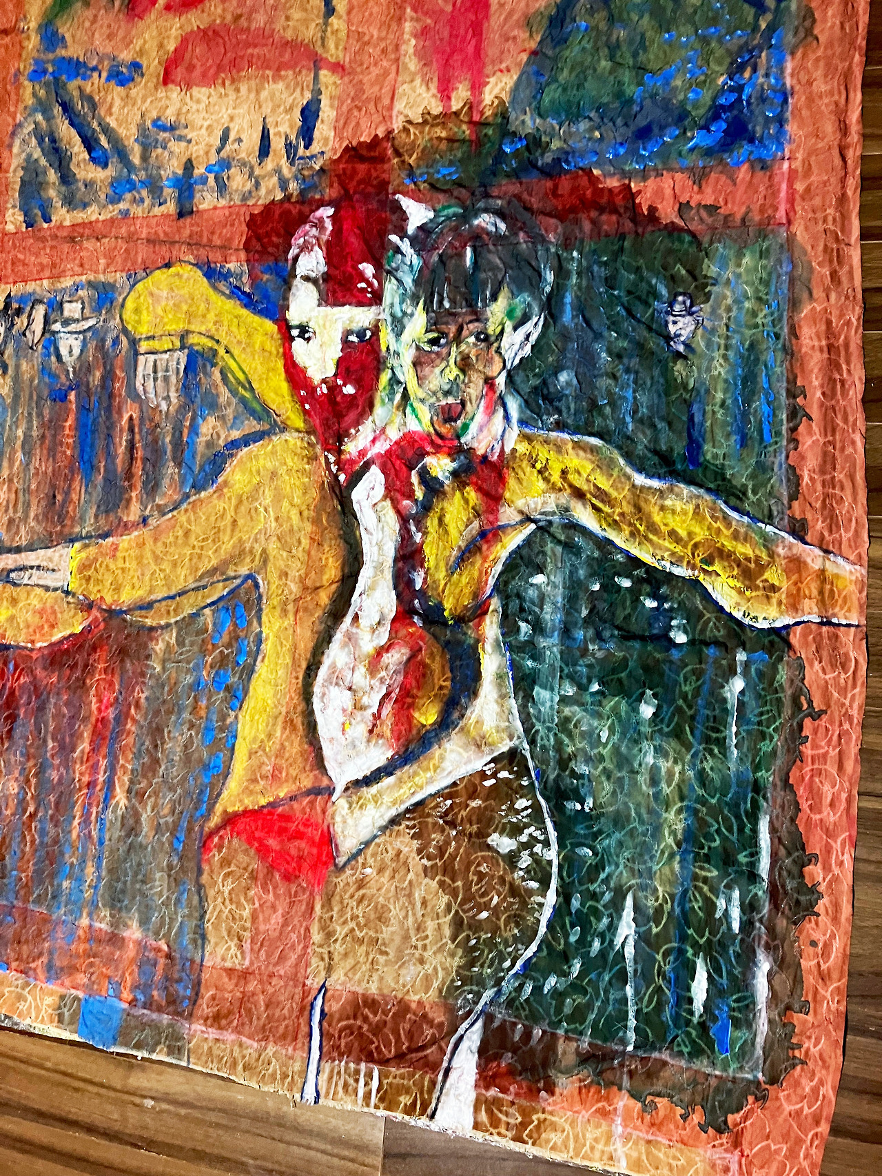 Final image superimposed on the artist's work:: Louis Chul-joo Choi, the Missing pond, 112X249cm, acrylic and composite materials on cloth, 2024