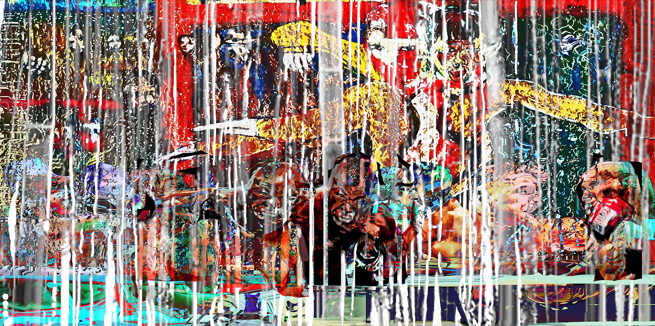 Contemporary Art Work: Abstract Painting with Treacherous Conceptual Art: Louis Chul-joo Choi, Bamboo Forest i222-Tyson totally gave in to the boxing match, but I'm happy, a hand-painted picture on a computer/ Reinterpreting cartoon news review, which uses modern art abstract painting as treacherous conceptual art, as a conceptual artist's work