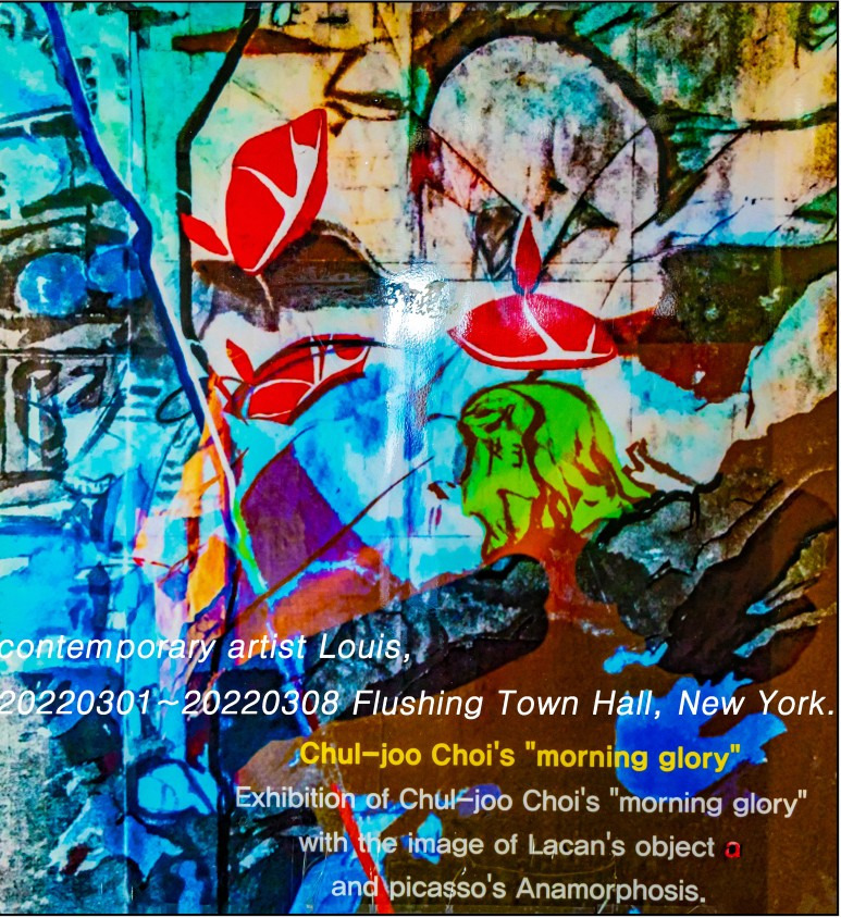Therefore, the rendering of the desire structure revealed by abstract encounter with reality at the intersection of desire outside the window applies the mathematical desire concept abstract design, or the image of the desire concept, to the Choi Chul-joo desire formula, and on March 1, 2022, morning glory appears as a flat real image as the subject of desire as a reversible shade of light in the Flushing Town Hall (New York) exhibition.