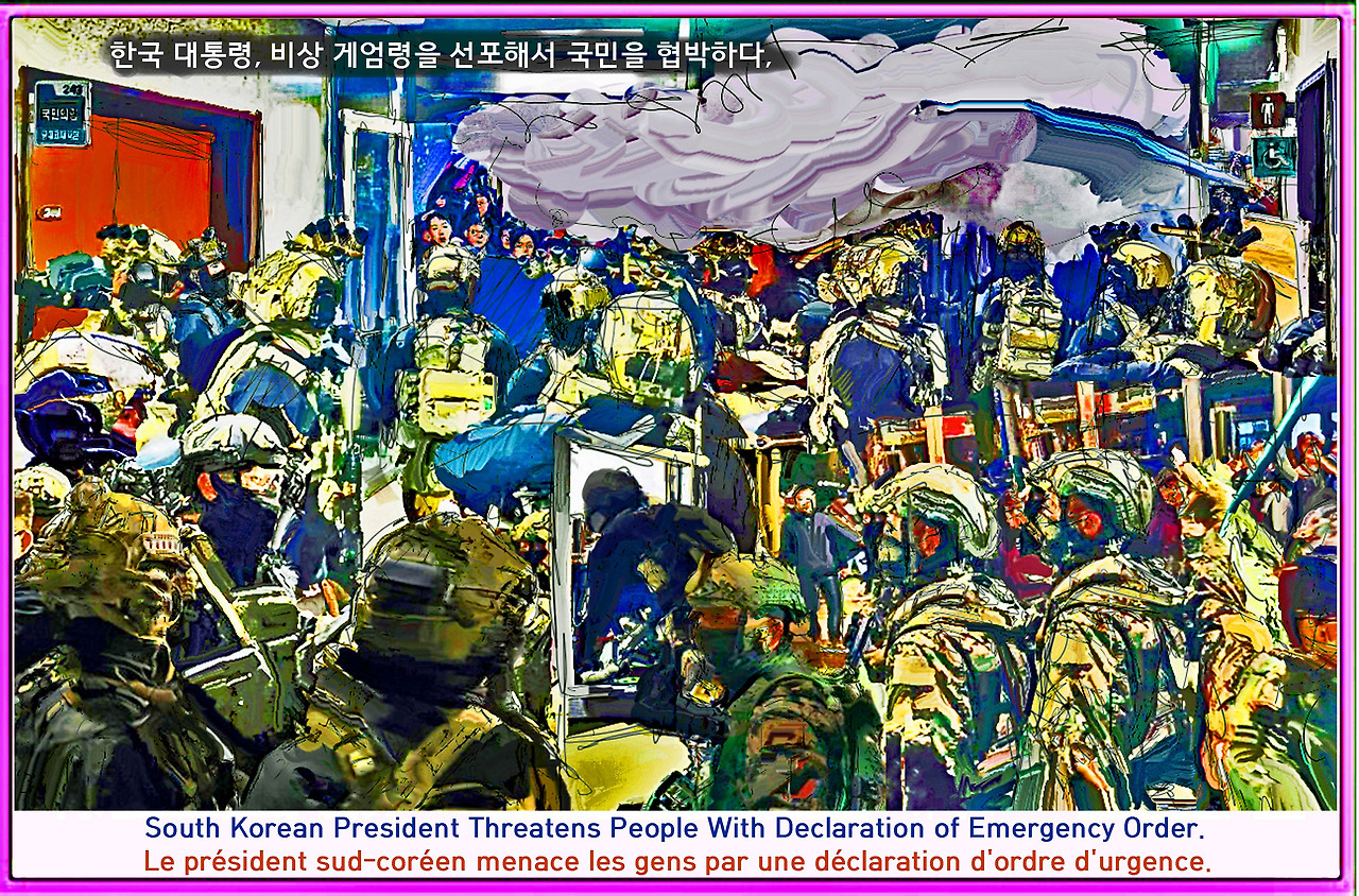 Louis Choi chuljoo, South Korean President Threatens People With Declaration of Emergency Order 5-1/ The visualization of the concept of desire: Visualizing the concept of desire is a cartoon depicting events and performances manually, expressing the background of the cartoon as a landscape of desire with "morning glory" and "Bamboo Forest," and the cartoon image reconstructs desire into an abstract and realistic picture./ [The interpretation of words in a cartoon news ː l’interprétation du mot dans une nouvelle caricature] ■ A line News of Choi Chul-joo’s Manwha Review [198] South Korean President Threatens People With Declaration of Emergency Order. (2024-12-05)/ Reporter Choi Chul-joo’s Cartoon Review: The beneficiary who experienced martial law as a desire for the other is passive, but the powerful person who can actively enforce it from the perspective of the perpetrator puts it into practice with the same desire as the sympathizer. When a powerful person provides the benefit of power or a sympathizer receives it, the sympathizer becomes the same desire and becomes the subject of martial law enforcement. Here, the desire of the other, which is obscured, generalizes martial law practiced by inappropriate powerful and sympathizers as another object of desire and acts like a victor of war. However, when martial law as an act overshadowed by reversible light is not generalized as a public act, inappropriate power and sympathizers are antagonized by the desire of the other as a subject who implements it according to the general desire of the others. / Choi Chul-joo, a current affairs critic, was a reporter at the Ministry of Culture of the News Busan Internet Newspaper. He is a cultural design critic and abstract artist who paints Current affairs cartoon cartoons News and abstract paintings in contemporary :art works and webtoons. The beneficiary who experienced martial law as a desire for the other is passive, but the powerful person who can actively enforce it from the perspective of the perpetrator puts it into practice with the same desire as the sympathizer. When a powerful person provides the benefit of power or a sympathizer receives it, the sympathizer becomes the same desire and becomes the subject of martial law enforcement. Here, the desire of the other, which is obscured, generalizes martial law practiced by inappropriate powerful and sympathizers as another object of desire and acts like a victor of war. However, when martial law as an act overshadowed by reversible light is not generalized as a public act, inappropriate power and sympathizers are antagonized by the desire of the other as a subject who implements it according to the general desire of the others. ■ Choi Chul-joo's Concept of Desire Formul: In the concept of Choi Chul-joo's desire, mathematical desire as an axiom of logic in the concept of desire results in reality as a concrete phenomenon rather than based on the external structure of the linguistic meaning through abstract design. Therefore, the rendering of the desire structure revealed by abstract encounter with reality at the intersection of desire outside the window applies the mathematical desire concept abstract design, or the image of the desire concept, to the Choi Chul-joo desire formula, and on March 1, 2022, morning glory appears as a flat real image as the subject of desire as a reversible shade of light in the Flushing Town Hall (New York) exhibition./ Choi Chul-joo's Desire Formula is a multiplication formula that uses I/I (image) and D/d (design) as symbols to generate a polynomial desire image by connecting the number of design images with event and performance images. The linguistic meaning of an image as a symbol is an image (I/i) of the concept of desire to identify the abstract concept of desire./ The image of desire, which applies Choi Chul-joo's desire formula D(I...I')d=I(D...D')i to 'morning glory', connects the concept of desire with the background of 'morning glory' as an image to create a landscape by floating morning glory in the sky. In addition, in <morning glory>, the desire formula "D(I...I')d=I(D...D')i" is substituted, the connection effect between the concept of desire and the "morning glory" as desire image shades the concept of desire in the reversible shadow structure by setting the object as the concept of desire image of women by the "morning glory". In other words, the image of desire (I) is the structure of desire (D) because desire (D) is repeated (I...I') in several images (D...D'), and the image of art behavior or desire image(I) appears as the concept of desire(i). ■ Choi Chul-joo's Desire The design process of abstract concepts: 1. The concept of desire is abstracted from the perspective of an image to the outside of reality, and the image of reality as an object of abstraction is designed as the correlation between reality and reality. This is the design process 1 of Choi Chul-joo's concept of abstraction of desire. This does not presuppose a causal relationship with the real world, but rather results in an abstract concept of desire as a correlation with reality to escape the misunderstanding that transfers from an abstract concept to a real structure. 2. The scope of showing the concept of desire is created and located by omitting the actual size of the abstract concept as a shade of the concept of desire originating from the actual image. In addition, Choi Chul-joo's conceptual process 2 follows the process of decorating an object with a color of universal reality suitable for custom in order to have aesthetic value suitable for its position as a single image. This creates an abstraction that contrasts with the past and desire, in which the aesthetic structure hidden by realistic colors is divided by clouds and obscured by shaded light, obscuring the abstract concept in the actual image. 3. The subject who painted abstraction realizes the reality that symbolizes the concept of desire, and the u