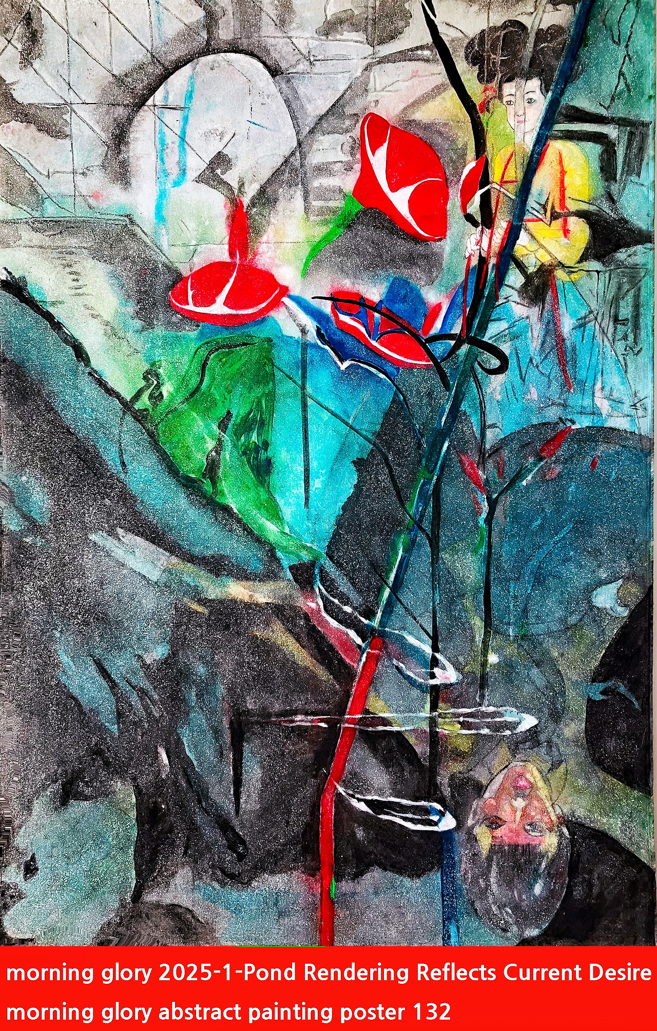 And by expressing the absence of the concept of desire in reversible temporality as a phenomenal image, "morning glory" expresses the mirror image reflected in the "pond" to abstract the structure of reality from the desire hidden in the shade of reversible light in the intermediate stage, which represents the existence of various desires beyond the current abstract color and planar structure.