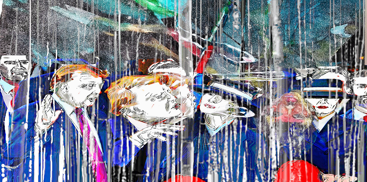 Contemporary Art Work: Abstract Painting with Treacherous Conceptual Art: Louis Chul-joo Choi, bamboo forest 236-Let me be your fantasy, a hand-painted picture on a computer/ Reinterpreting cartoon news review, which uses modern art abstract painting as treacherous conceptual art, as a conceptual artist's work