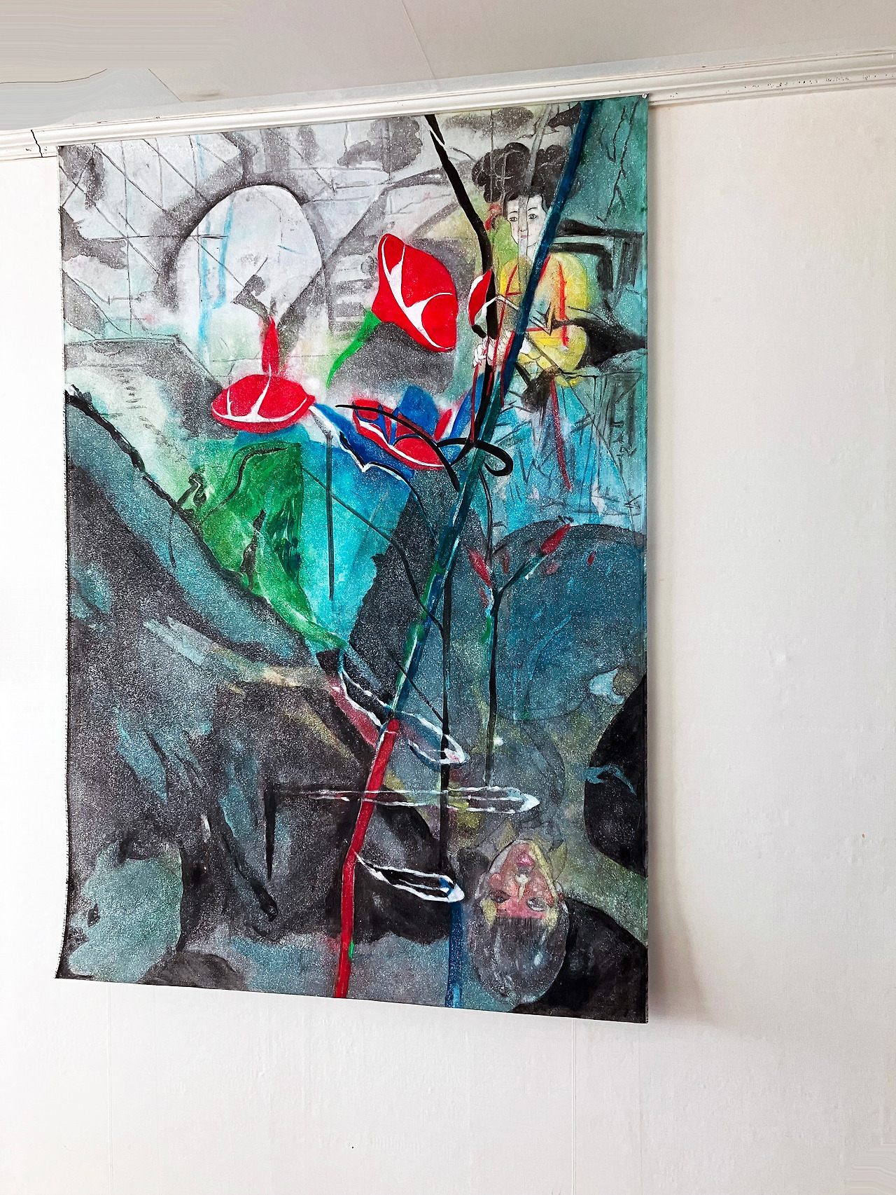 Louis Chul-joo Choi, a pond reflecting the image of one's present desires-sketch 2, 113X164cm, acrylic and composite materials on cloth, 2024