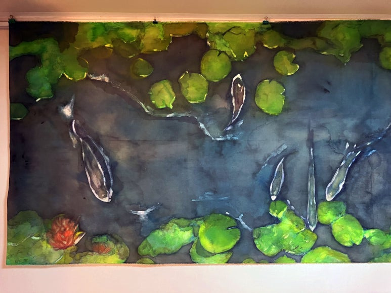 The expression of water as a structure of the object of desire contrasts with the sense of reality and the flat abstract gaze of the lotus, which gave a sense of motion to the flow of water by the movement of the fish,