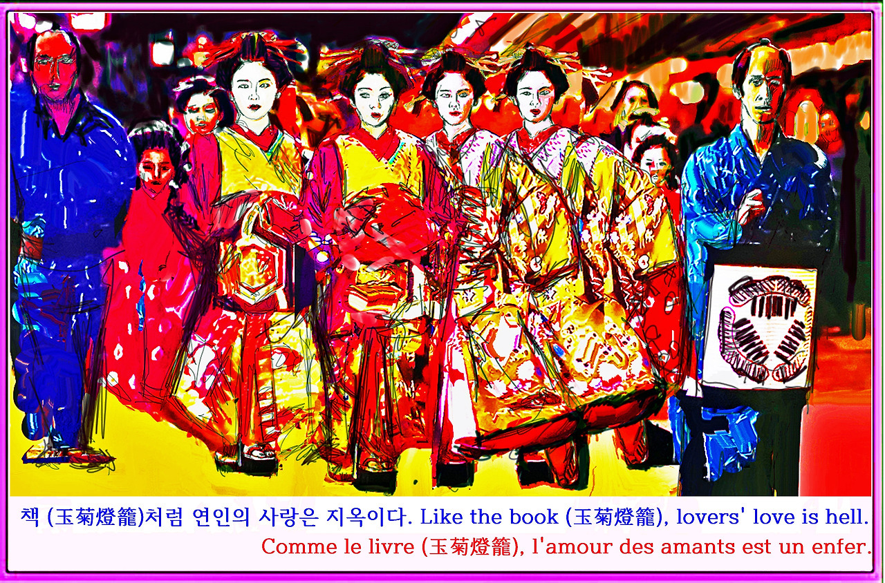 Louis Choi Chul-joo, Like the book "「玉菊燈籠」, a lover's love is hell, a hand-painted picture on a computer./ News Cartoon: Cartoonist & freelance reporter Choi Chul-joo's current affairs cartoon review one sentence - Cartoon review: cartoon designer Choi Chul-joo's Korean News Cartoon Culture Column in Cartoon Review [203] Like the book "「玉菊燈籠」, a lover's love is hell., (2024-7-14) / Reporter Choi Chul-joo’s Cartoon Review