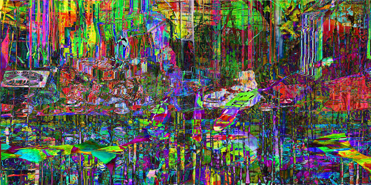 Background image of an artist's artwork: Louis Chul-joo Choi, morning glory p134-2-1-Desire structure of objects in a pond reflected-Mona Lisa, a hand-painted picture on a computer /