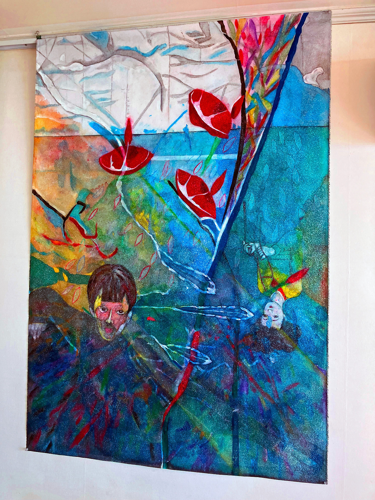 Louis Chul-joo Choi, morning glory 2025-2-Desire structure of objects in a pond reflected by reversible white light, 113X165cm, acrylic and composite materials on cloth, 2025