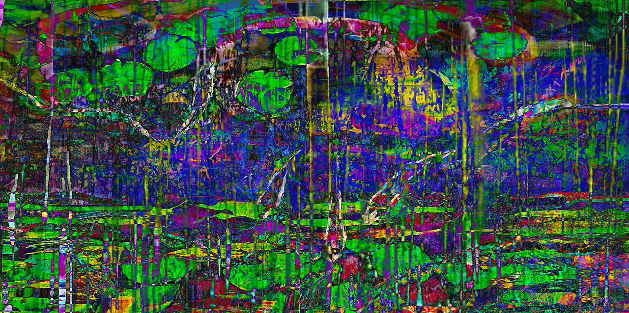 Louis Chul-joo Choi, morning glory p134-4-Desire structure of objects in a pond reflected-Mona Lisa, a hand-painted picture on a computer