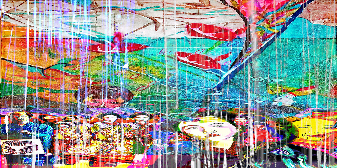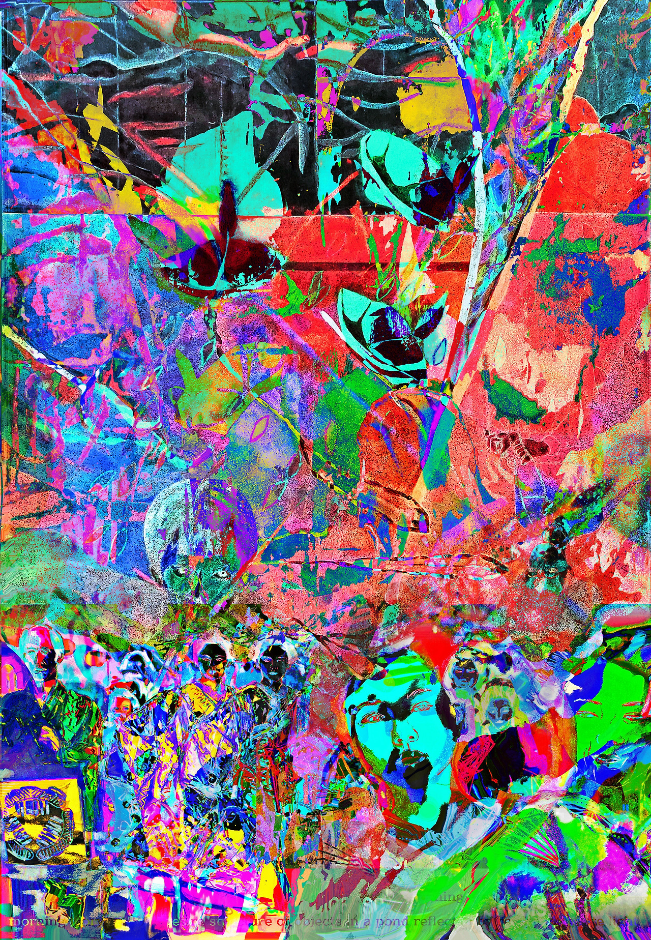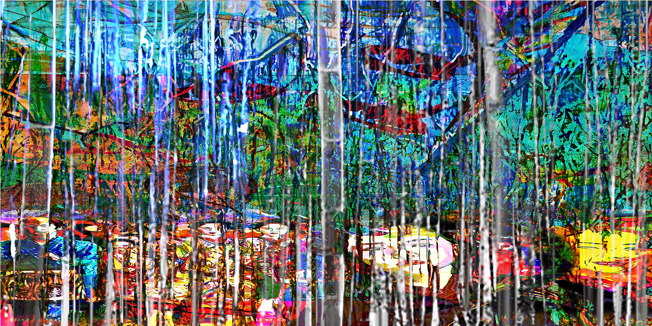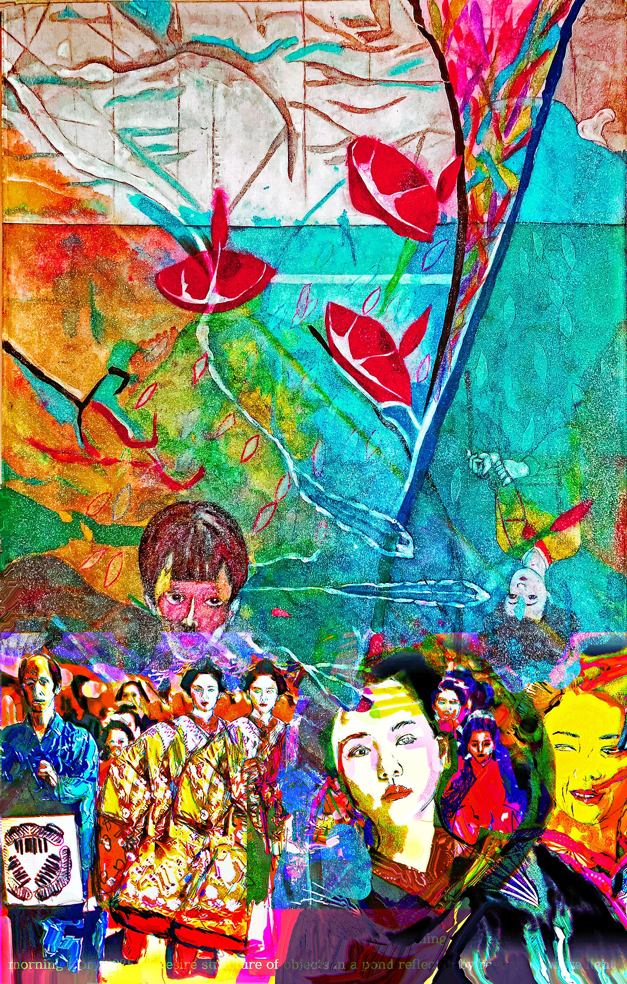 This translates to the first non-realistic abstraction poster at Louis Choi Chul-joo's 2022 New York Exhibition to actualize the Desire Object. The image <Louis Choi chuljoo, In front of the bamboo forest-j268-Like the book "「玉菊燈籠」, a lover's love is hell-pond-mirror> becomes a non-real abstraction of reality.
