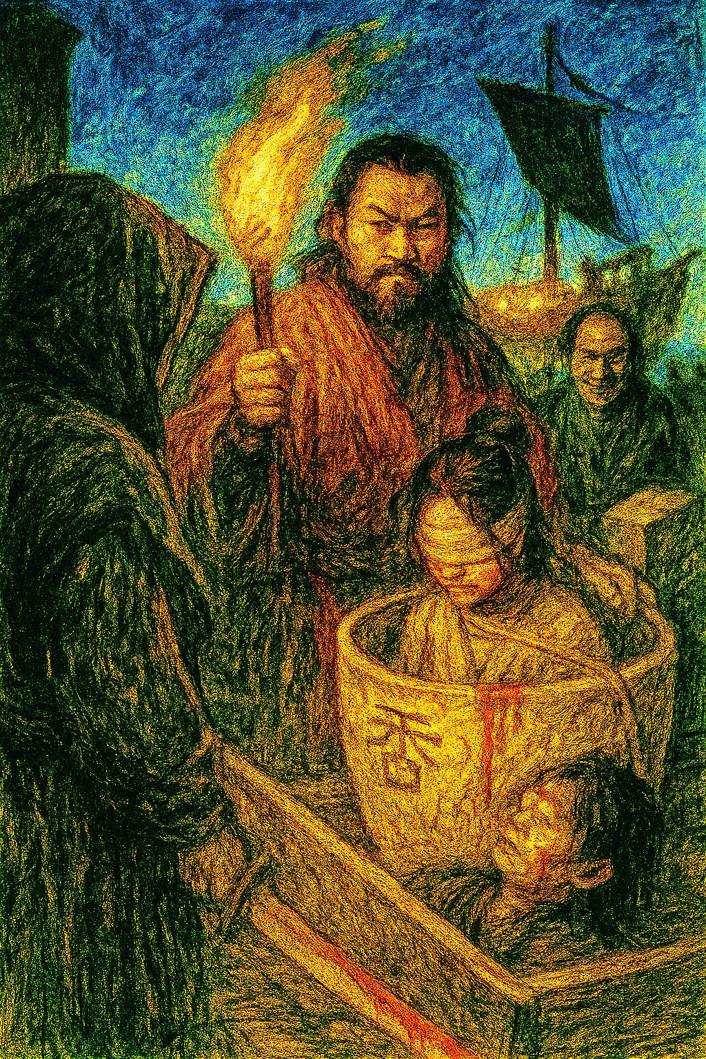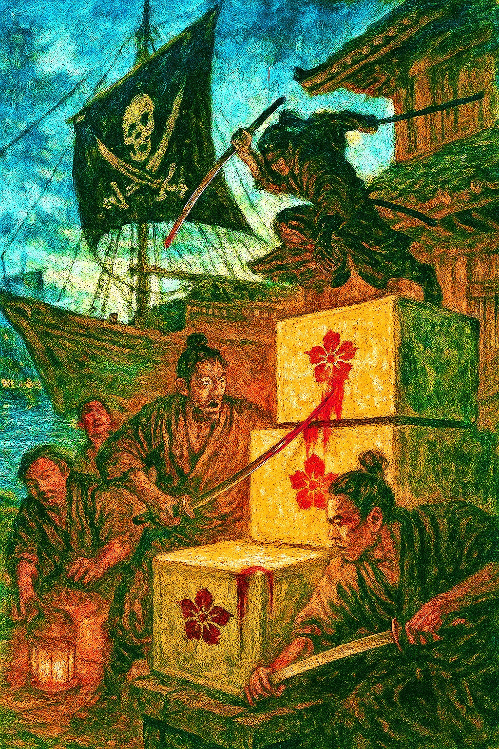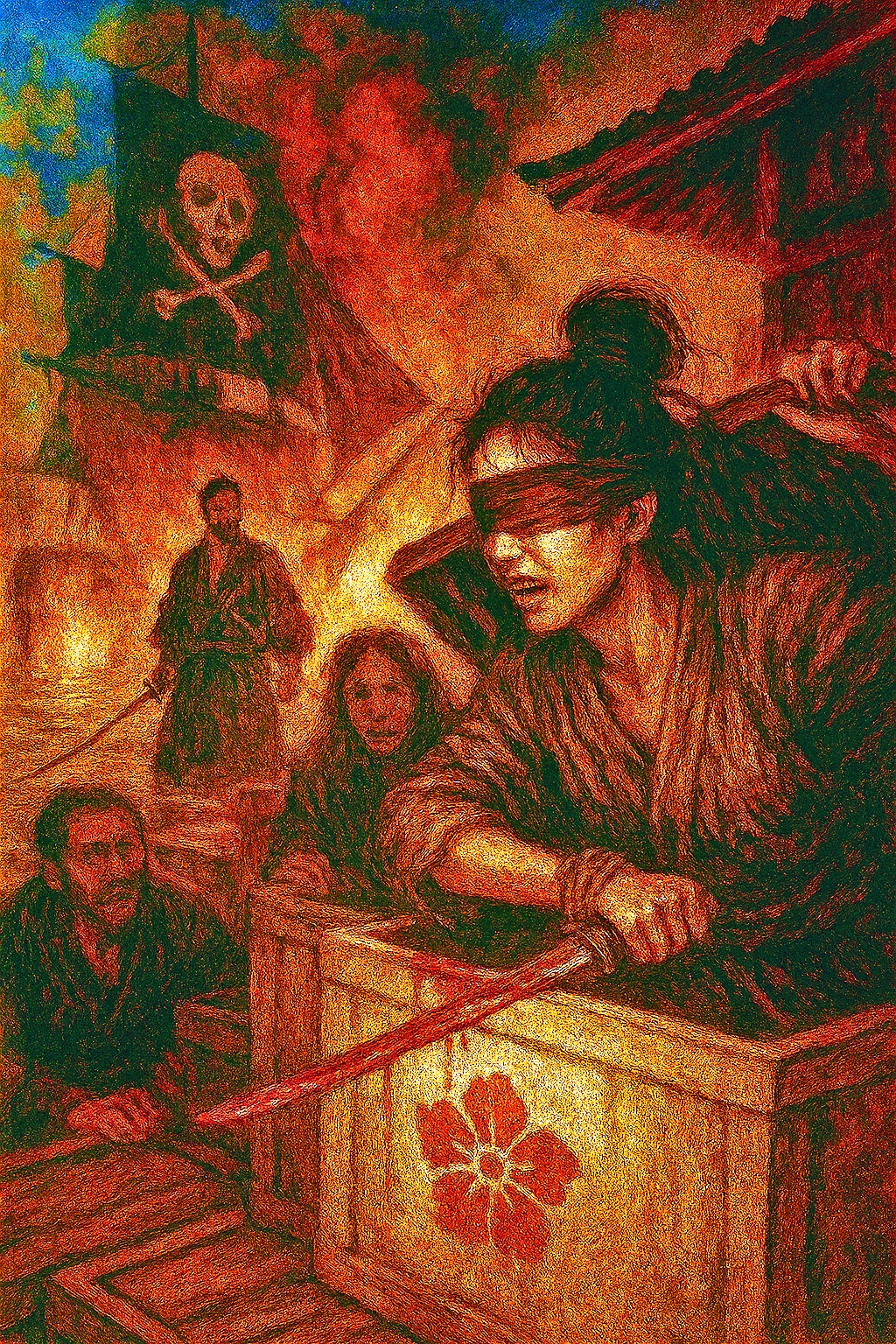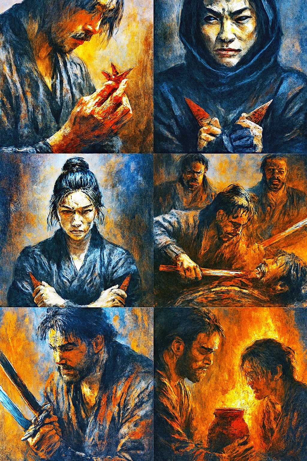 에도, 어느 늦은 밤. 가마 불이 붉게 타오릅니다. 리젠은 피투성이가 된 손으로 도자기를 만들고 있습니다. 그의 눈은 무표정하지만 손끝은 떨리고 있습니다. 붉은 점토에 피가 스며들고 도자기는 살아있는 심장처럼 맥동합니다.