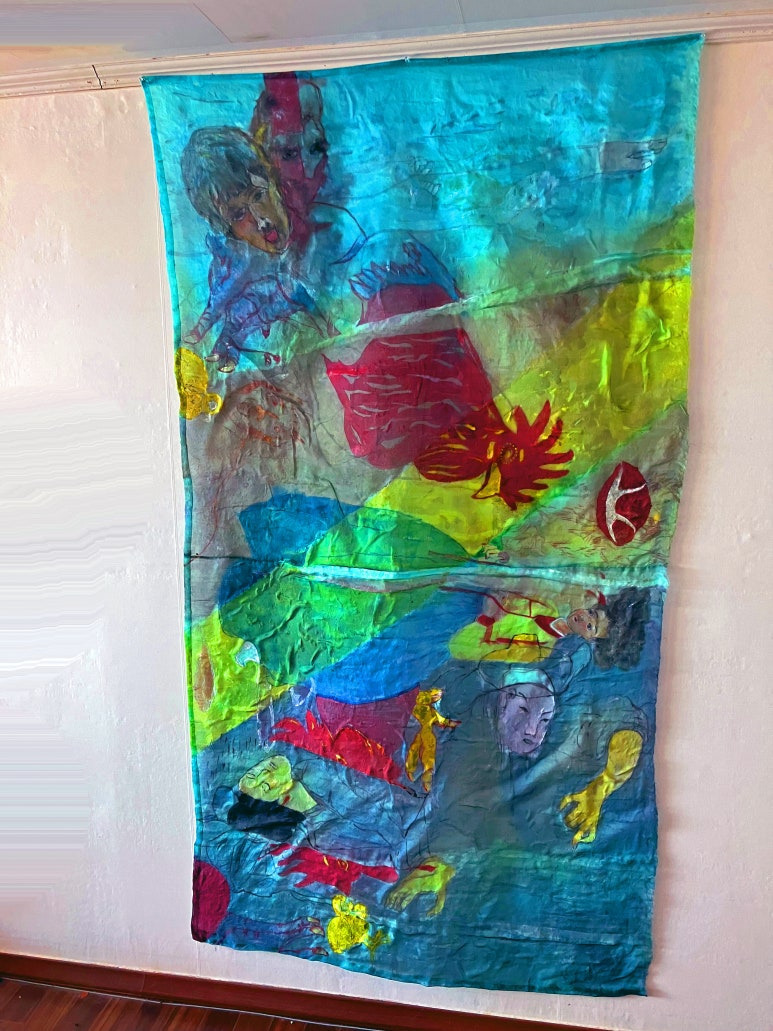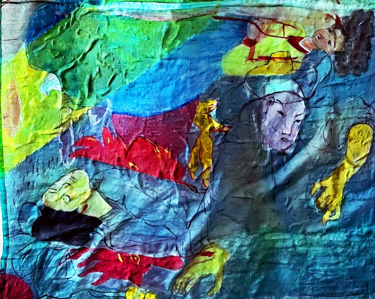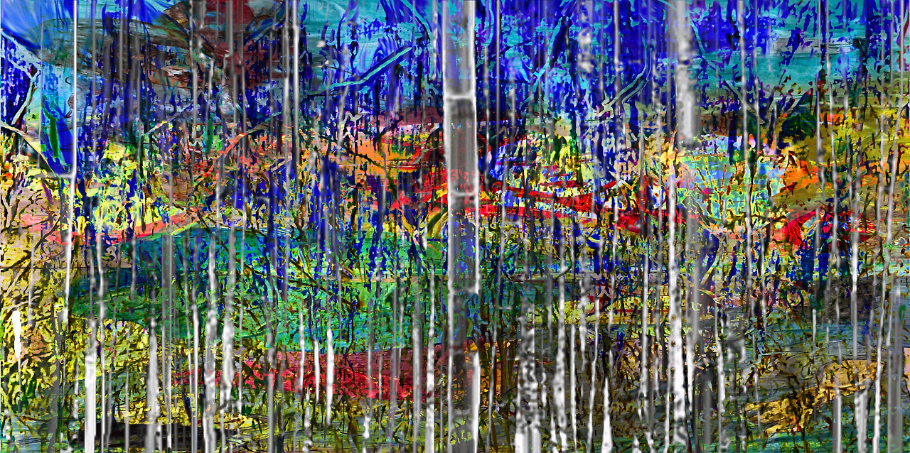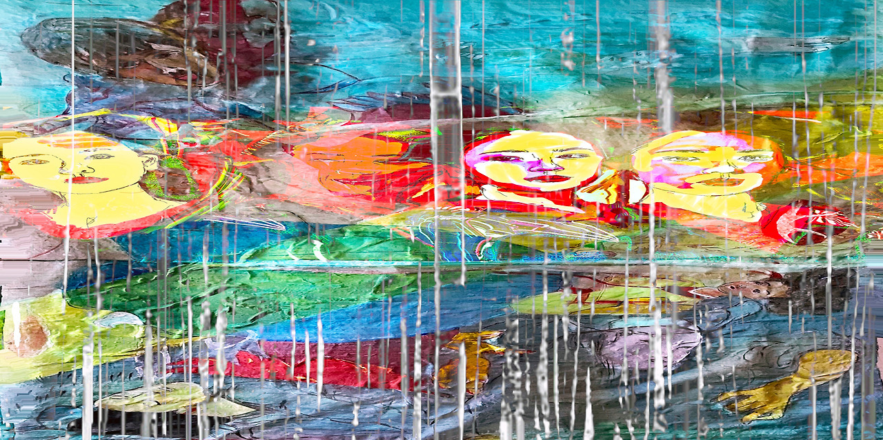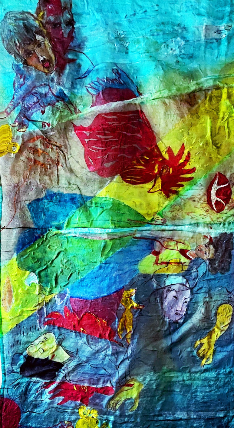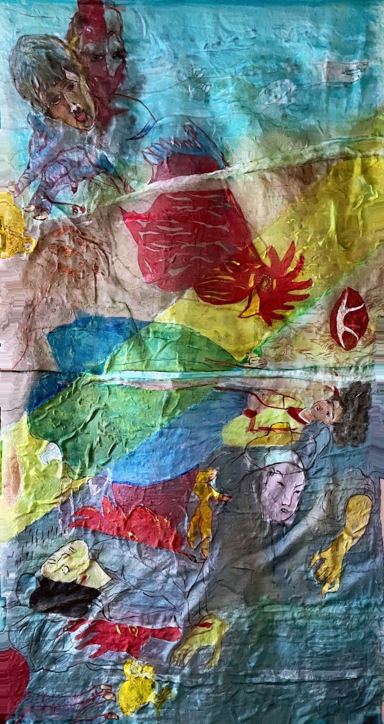 Louis Chul-joo Choi, missing pond, 112X249cm, acrylic and composite materials on cloth, 2024
