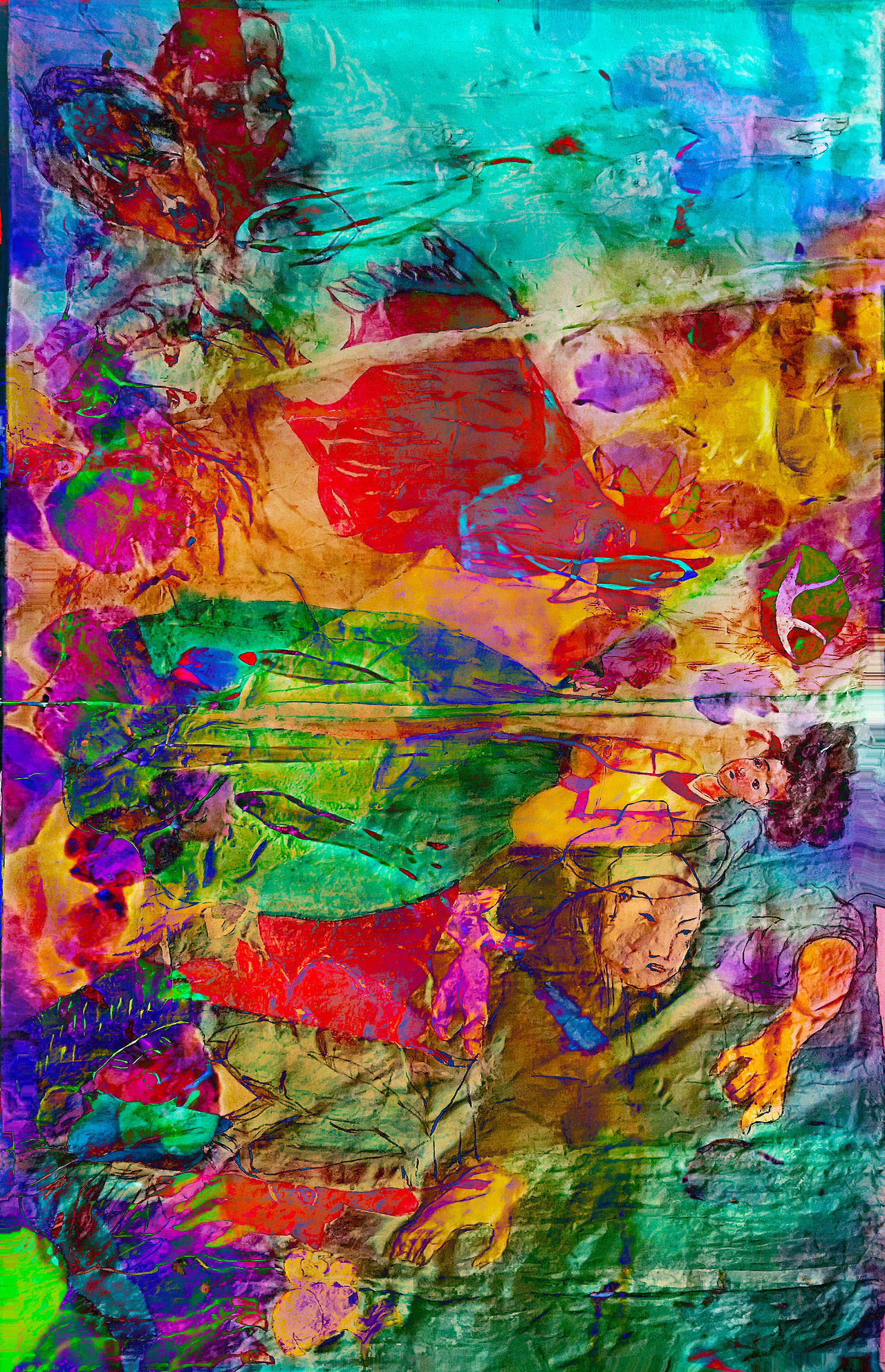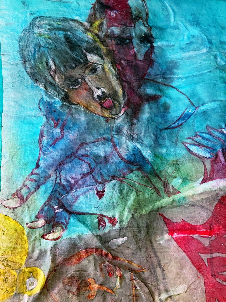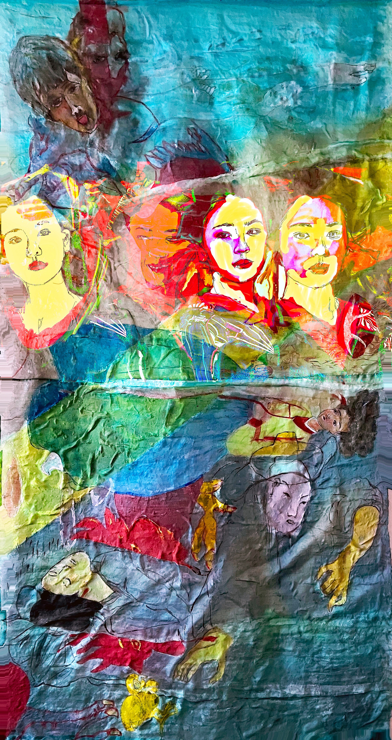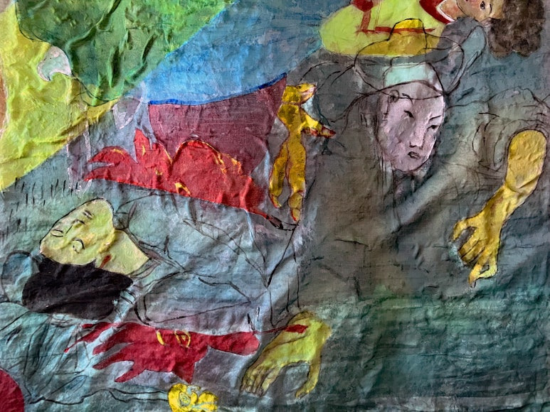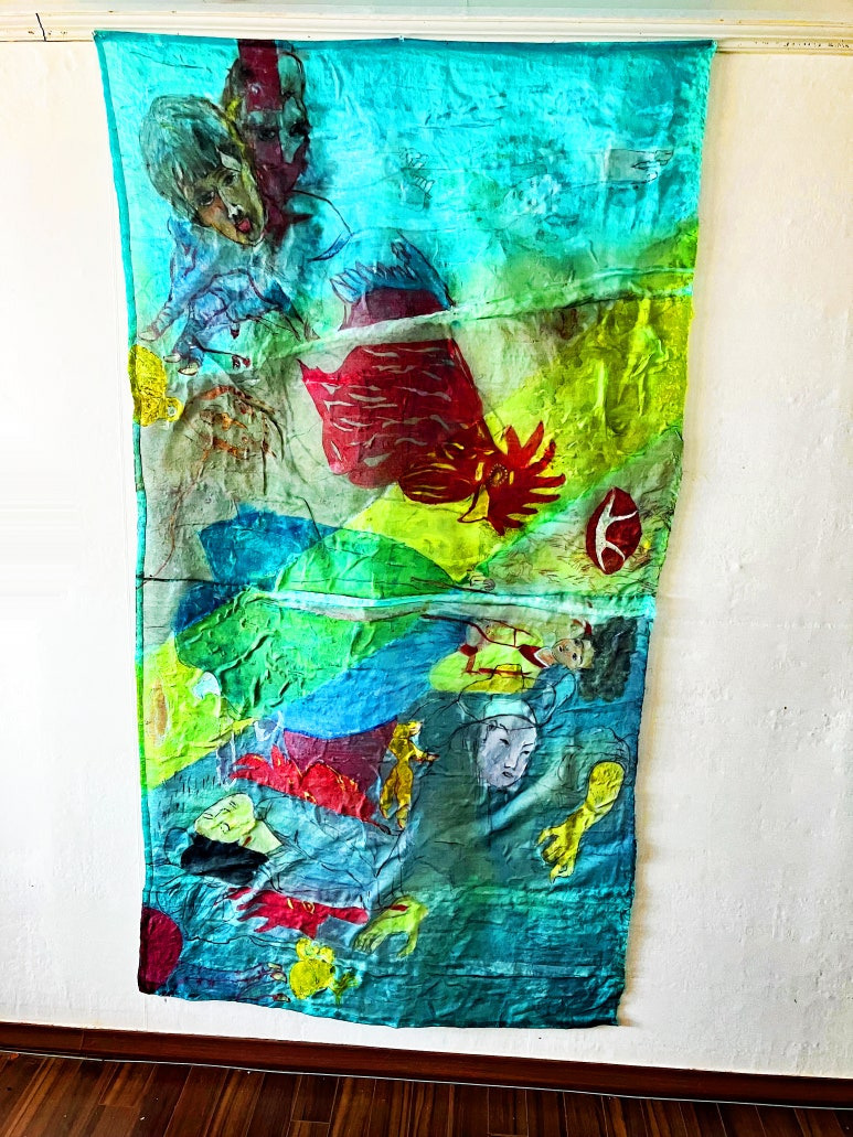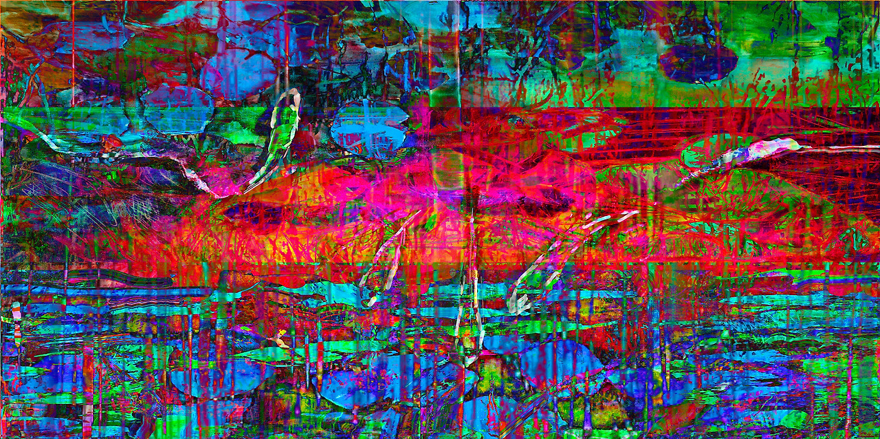 Louis Chul-joo Choi, missing pond, 112X249cm, acrylic and composite materials on cloth, 2024