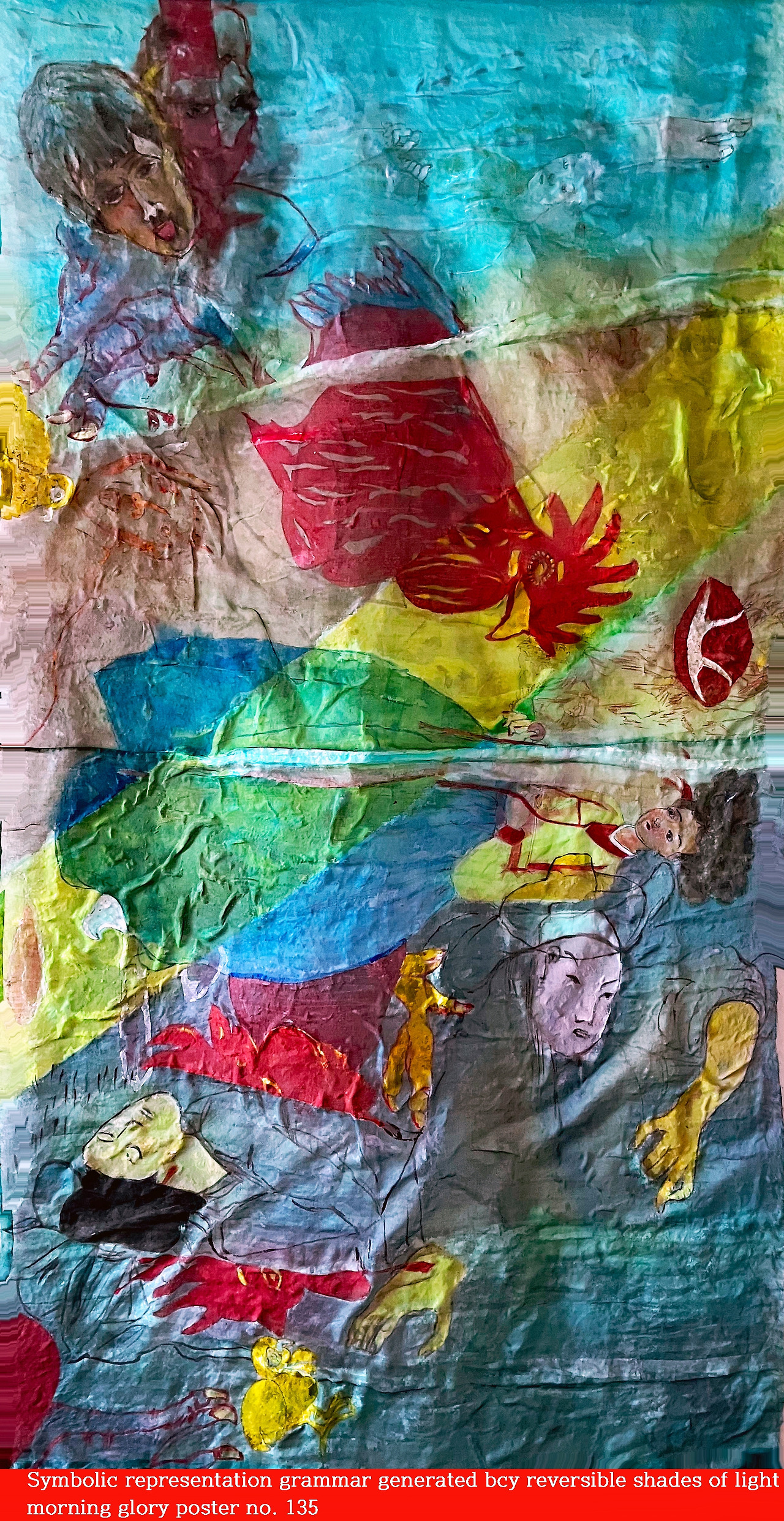 In this way, realism and abstract symbols repeatedly collide, revealing the symbolic structure before language.