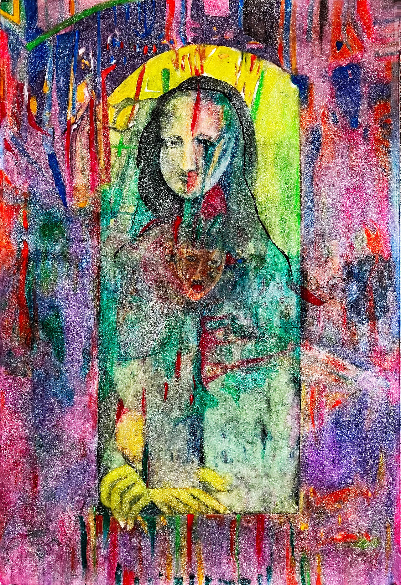Louis Choi Chul-joo, Morning glory-dancer image of Mona Lisa's Desire structure is synchronic linguistic meaning, 113X165cm, acrylic and composite materials on cloth, 2025