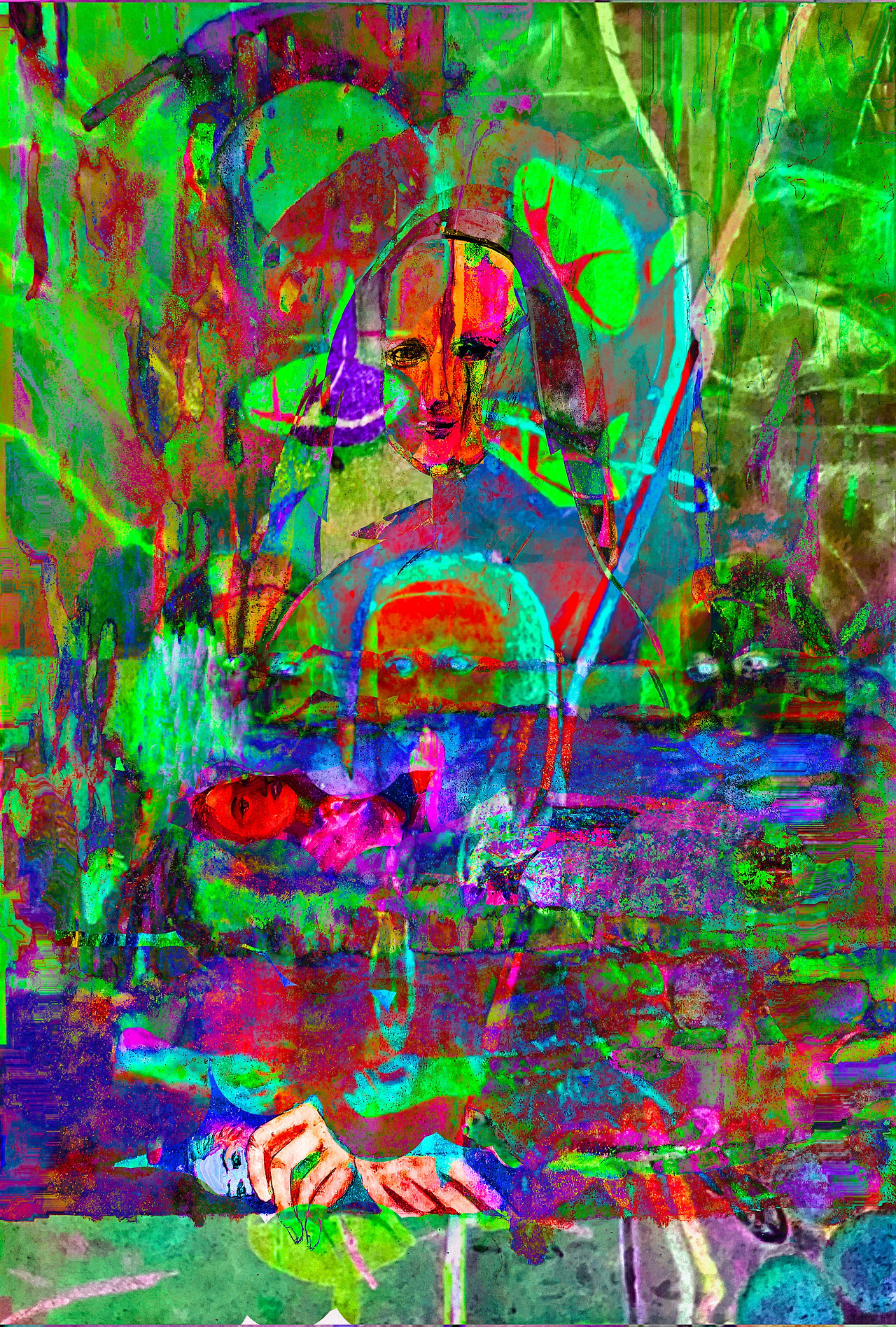 모나리자에 중첩된 오브제는 밝아지는 빛의 시간성에 따라 욕망 개념의 추상구조를 소거하고 빛의 음영으로 미적 가치를 확장하는 욕망 개념을 대리하는 추상적 존재를 사실적 욕망 이미지로 실재한다.