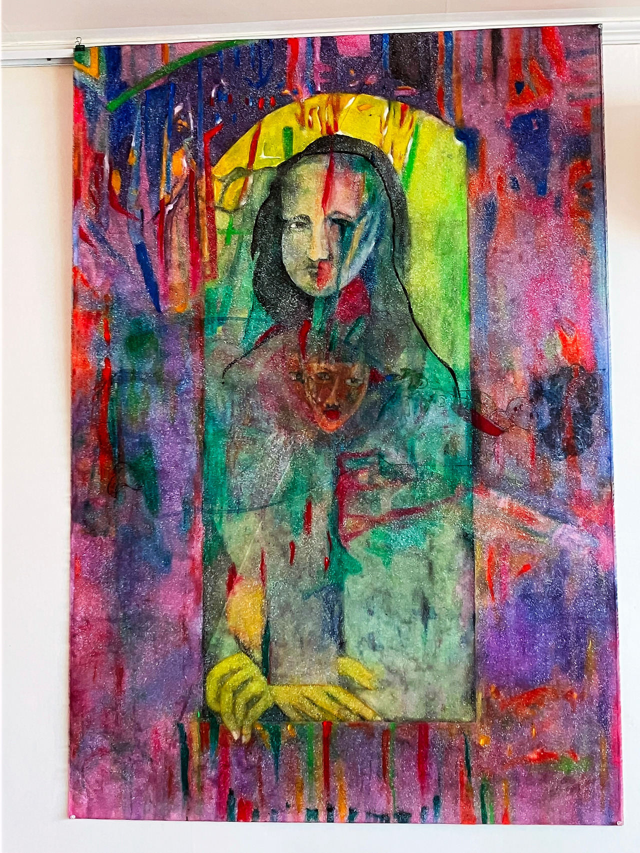 Louis Choi Chul-joo, Morning glory-dancer image of Mona Lisa's Desire structure is synchronic linguistic meaning-rendering, 113X165cm, acrylic and composite materials on cloth, 2025