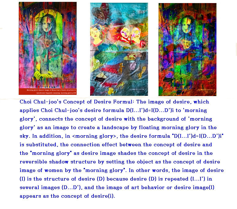 Here, Mona Lisa abstracts the linguistic meaning of the morning glory-dancer with a desire structure drawn in a linguistic sense through the Choi Chul-joo desire formula into a real image, and establishes the meaning of phenomenal language to have the same synchronism with the real image.