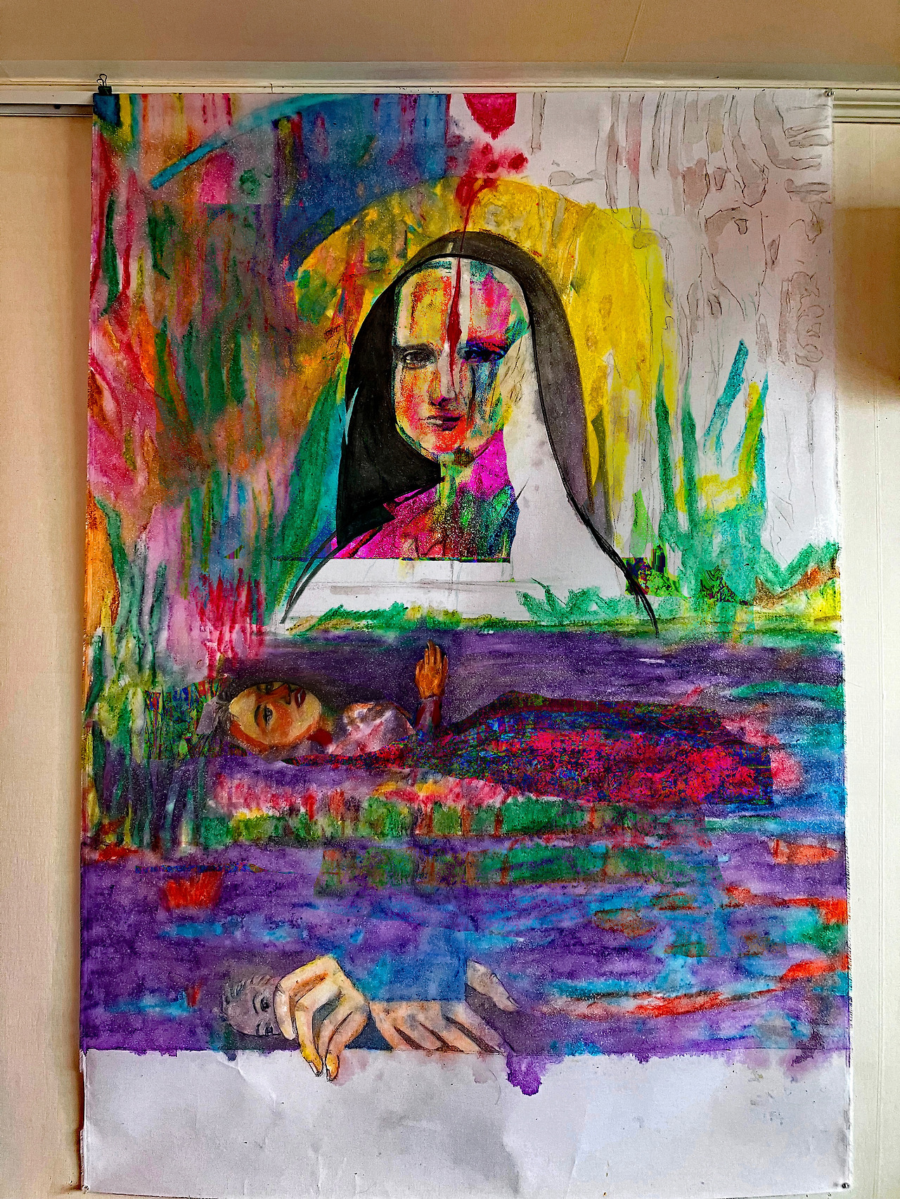 Louis Choi Chul-joo, a portrait of a mirror reflecting its desire on the window-sketch, 113X165cm, acrylic and composite materials on cloth, 2025