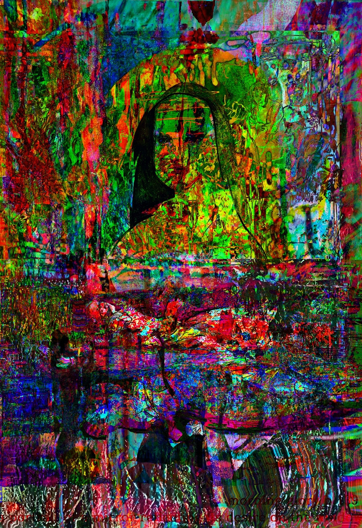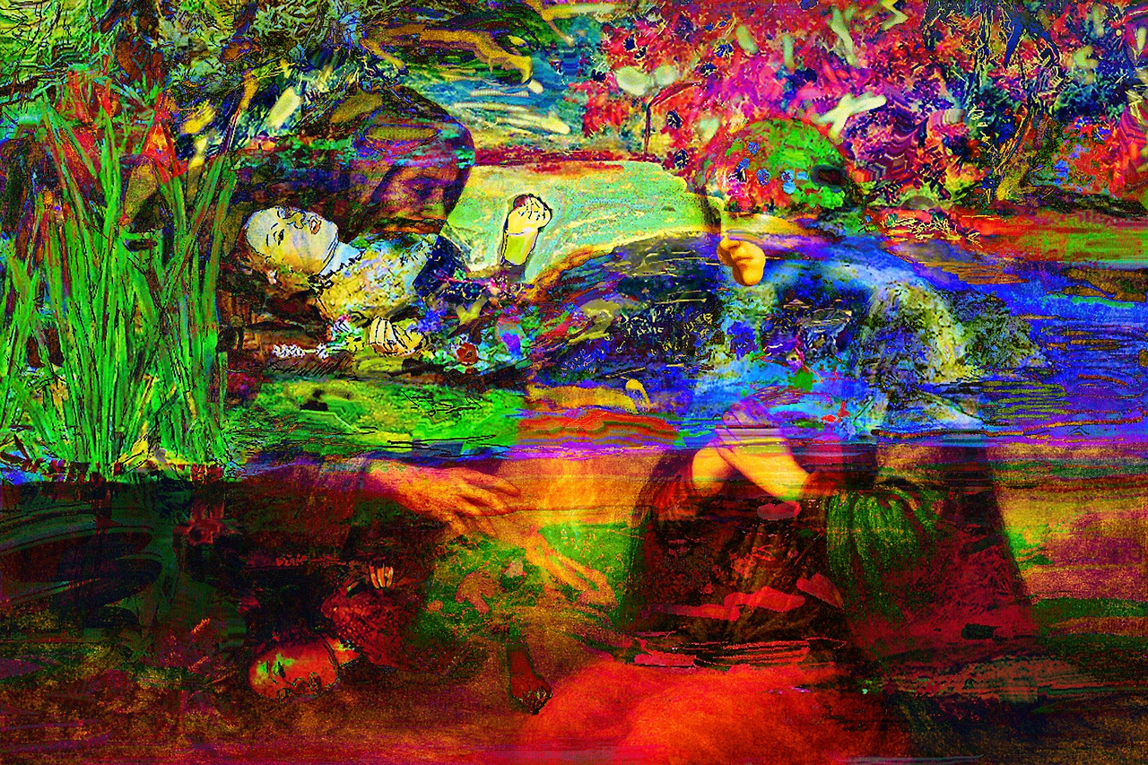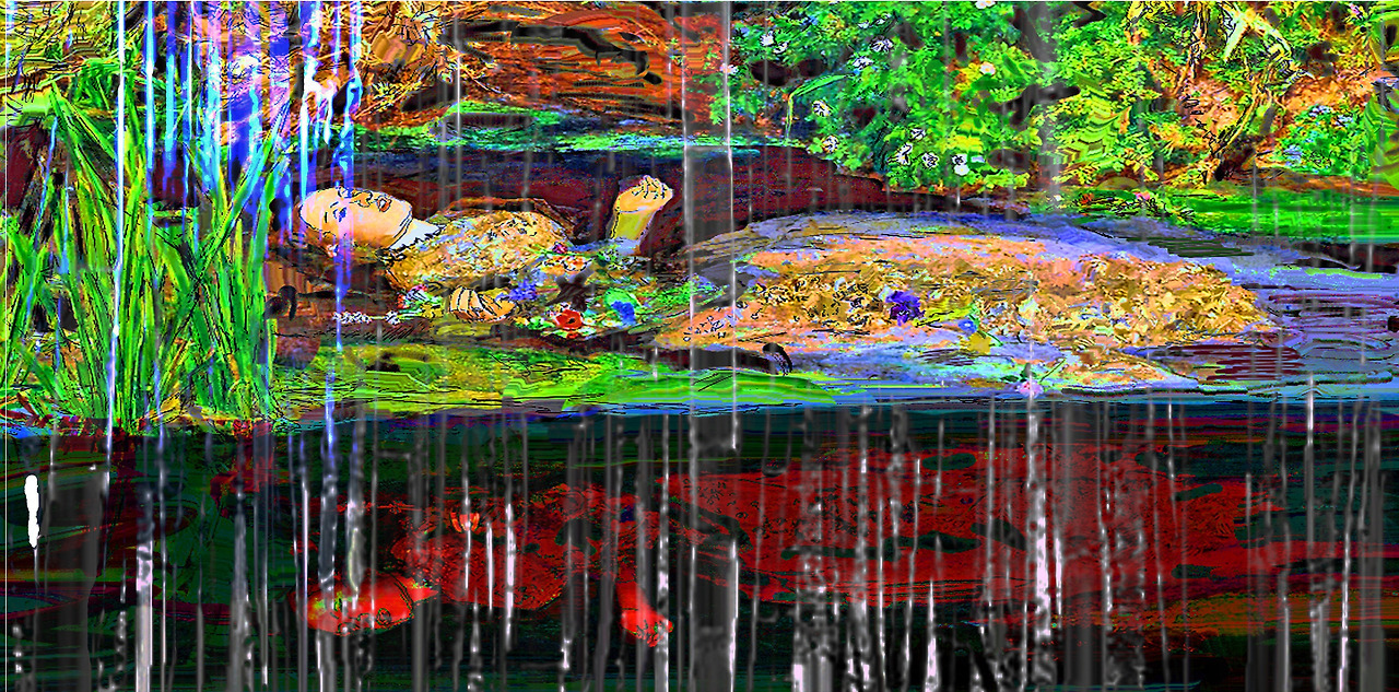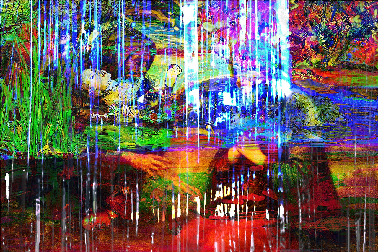 Desire Concept Realistic Abstract Work: Louis Choi Chul-joo, bamboo forest 289-Like the movie Ophelia, false love and war between countries end their deaths, a hand-painted picture on a computer: By repeatedly applying the concept of imaginary world and desire and Choi Chul-joo's desire formula <D(I...I')d=I(D...D'i)i> to the image of the work, it acquires aesthetic value and reveals its meaning by realizing formability in the shadow of reversible light. / The meaning of the shape, which is covered by the actual changed instantaneous movement of the shape, results in linguistic abstraction. In other words, the realistic shape of the other person's desire in a momentary event is a linguistic abstraction of the same meaning. Conceptual art with morning glory and bamboo as cultural background is linguistic abstraction. The abstract creates a conceptual structure based on the shape of subsequent reality fostered by language and hides the desire of others in a momentary event.