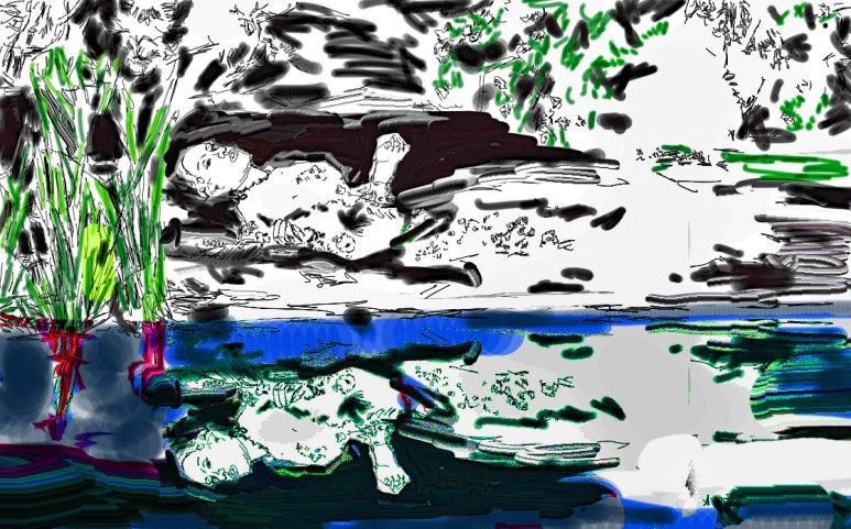 Louis Chul-joo Choi, morning glory p138-4, a hand-painted picture on a computer
