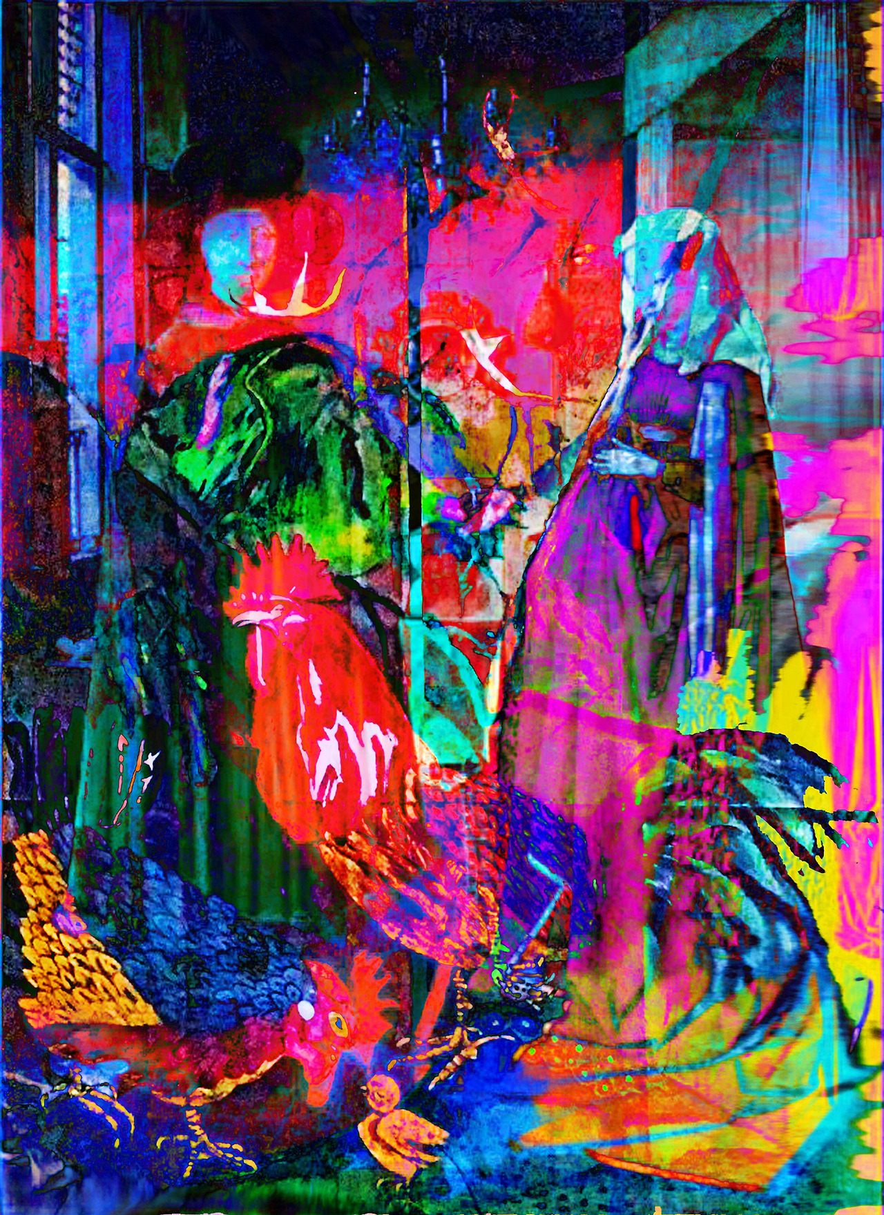 여기서 개념적 추상 구조는 왼손으로 여성의 오른손을 잡고 있는 남성의 이미지로, 언어적 의미에서 부부와 불완전한 추상적 결혼을 동일시합니다. 즉, 부부의 초상화는 인간의 삶, 죽음, 신앙, 사회적 관계가 교차하는 복잡한 상징 체계를 추상화하여 의식 구조와 무의식적 욕망의 언어적 의미를 실제 이미지로 추상화한 것입니다./ 글. 현대 미술평론가 최철주 (문화디자인박사)