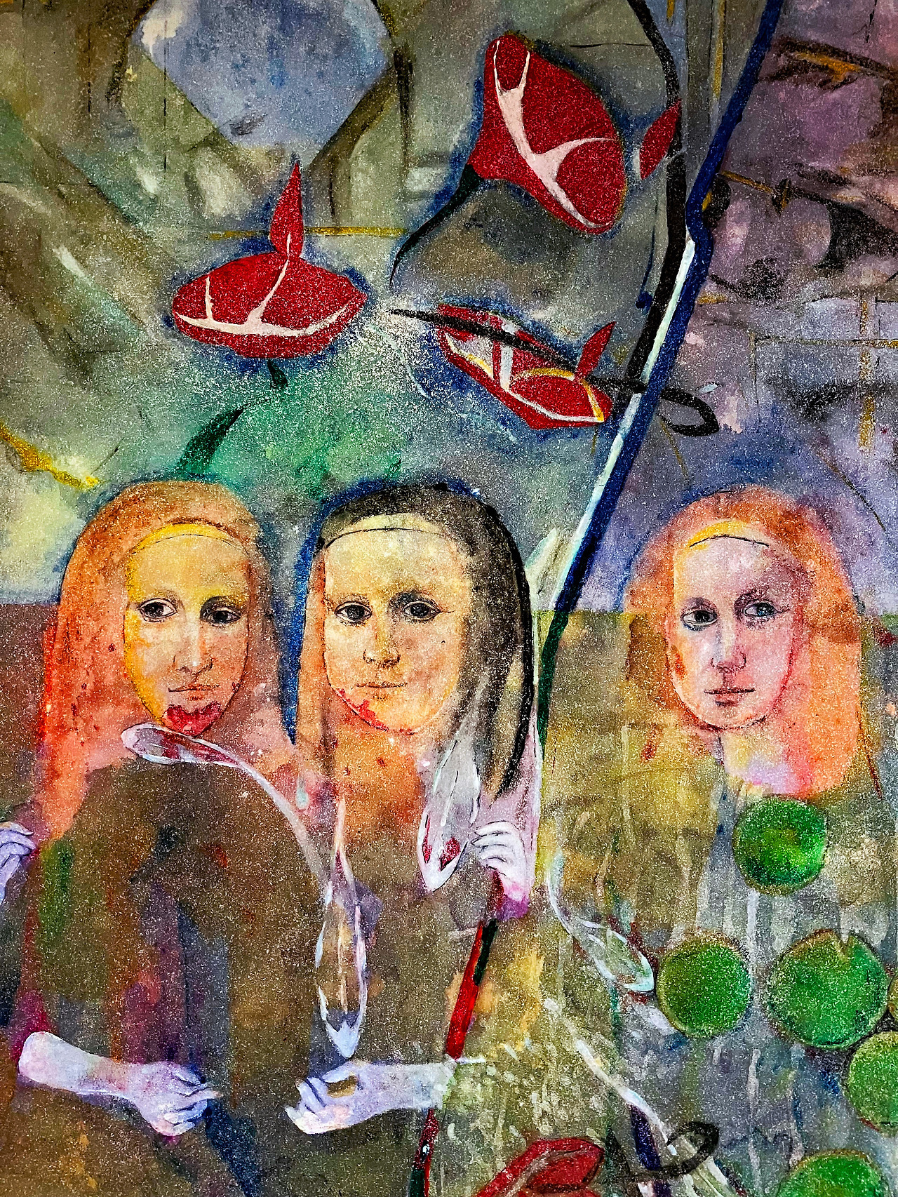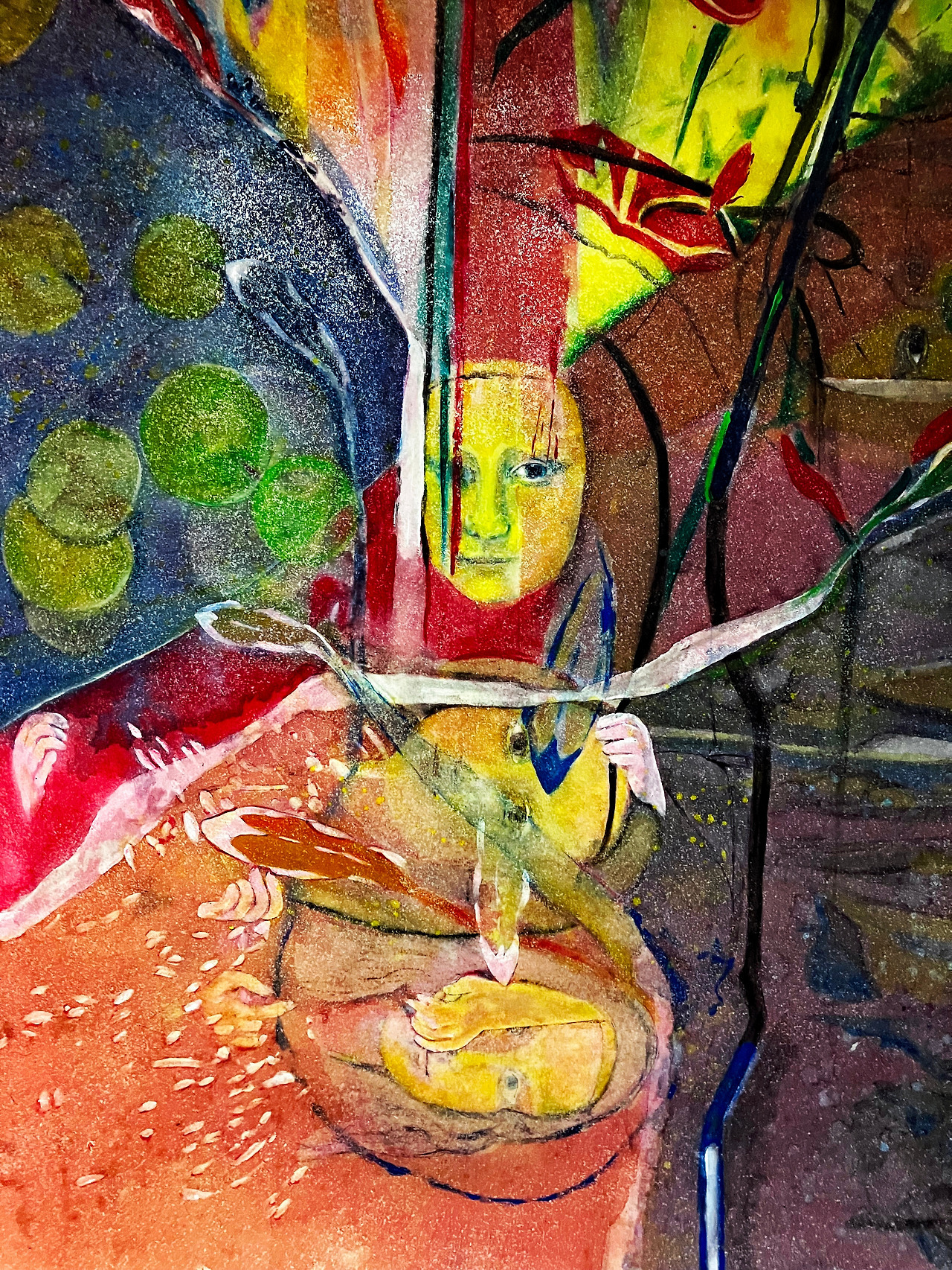 The five virgins, interpreted as the other's desire structure, are no longer subjective characters, but symbolic desire beings composed of the other's desire structure. In particular, the African mask faces of the two characters on the right are traces of the other's gaze dismantling the subject of the desire structure.