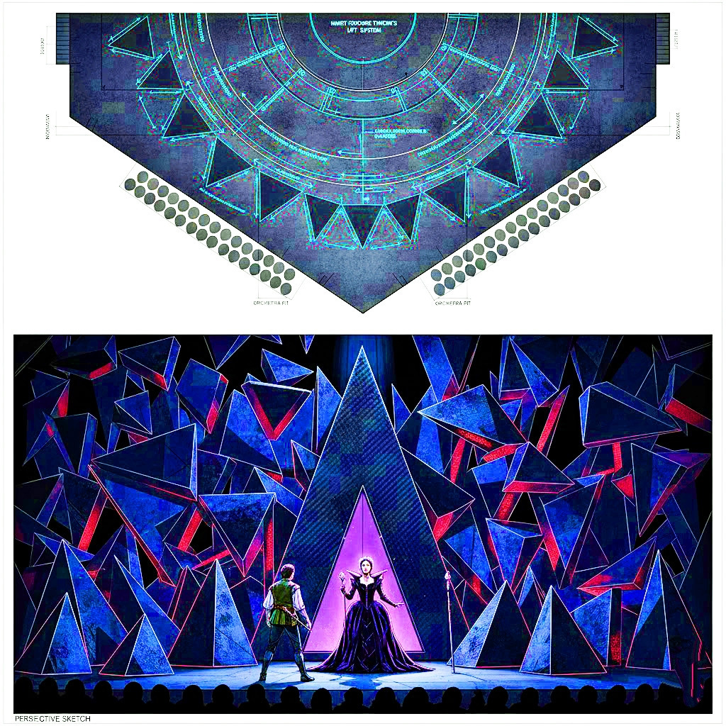 따라서 루이의 '마법의 피리'는 무대 예술이 오페라 장식부터 철학적 텍스트까지 음악을 지탱하는 장식이 아니라 오페라라는 철학적 주제를 그 자체로 관통하는 '공간 텍스트'가 될 수 있음을 증명합니다. 날카로운 삼각형의 모음으로 표현된 '밤의 여왕'은 모차르트가 계몽의 시대를 위협하는 현대적 불안과 독창적 광기를 가장 우아하고 잔인하게 구현한 결과물입니다. 이 작품은 단순한 무대 디자인에서 벗어나 오페라의 고전적 형태를 차용해 현대 개념미술이 수행하는 공간 해체 작업입니다../ 글. 현대 무대미술평론가 최철주 (무대디자이너 & 문화디자인박사)