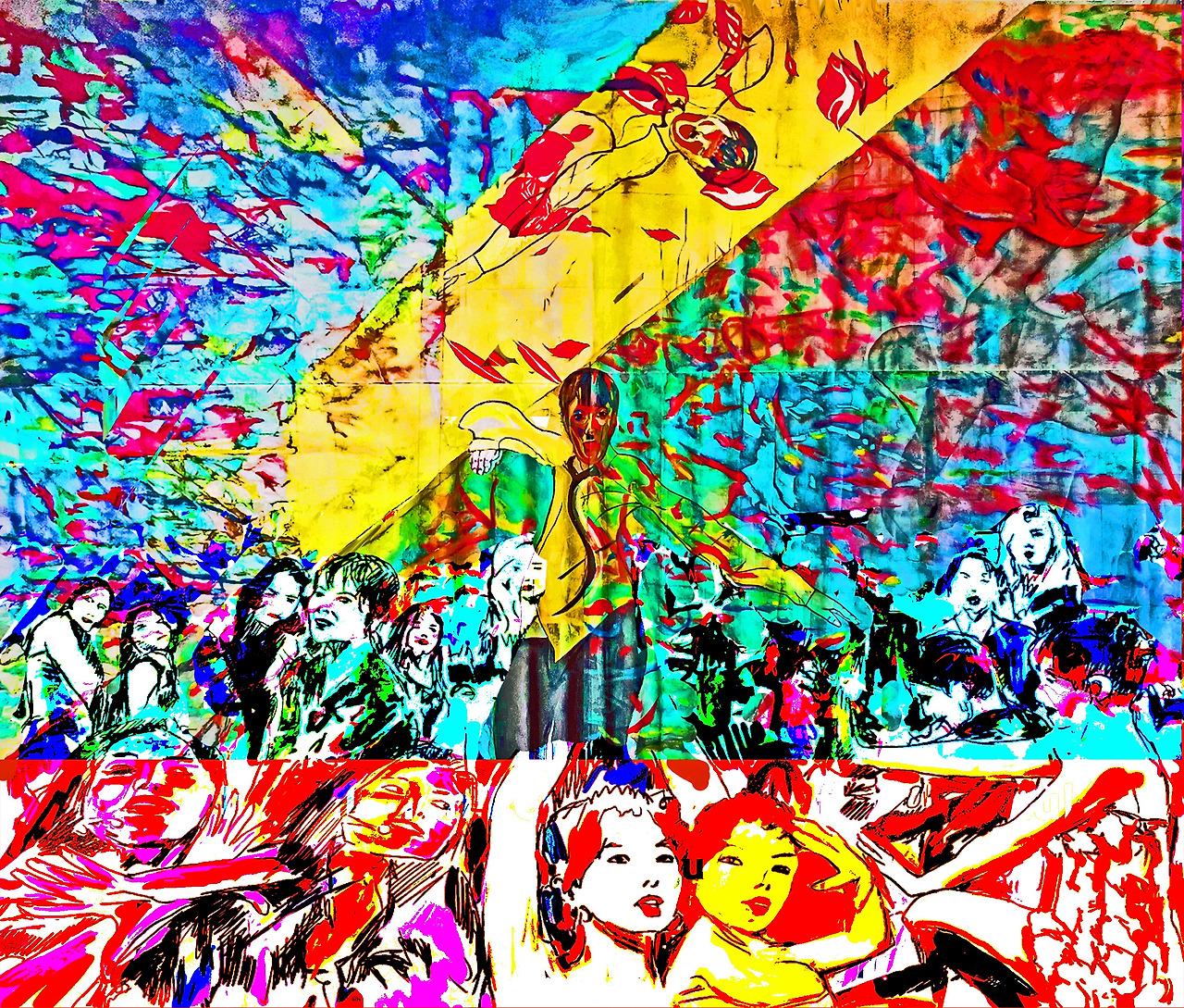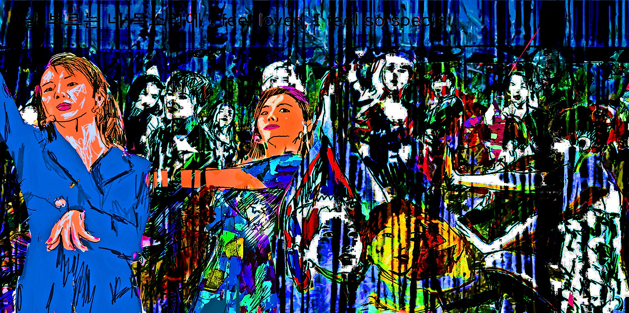 Contemporary Art Designer Louis, morning glory p110-7, a hand-painted picture on a computer, 2023 / Louis Choi chuljoo's "Painting Installation Performance" Exhibition poster An image of desire based on the cartoon review concept as an object ɑ of the concept of desire, 20230703 Haeundae-gu Office Gallery, Busan.