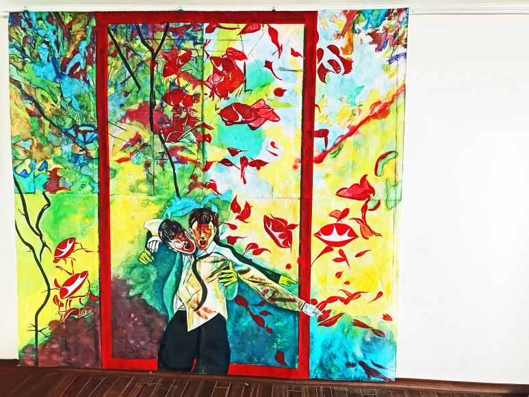 Louis Chul-joo Choi, morning glory window 2024-3-cave painting, 180X318cm, acrylic and composite materials on cloth, 2024