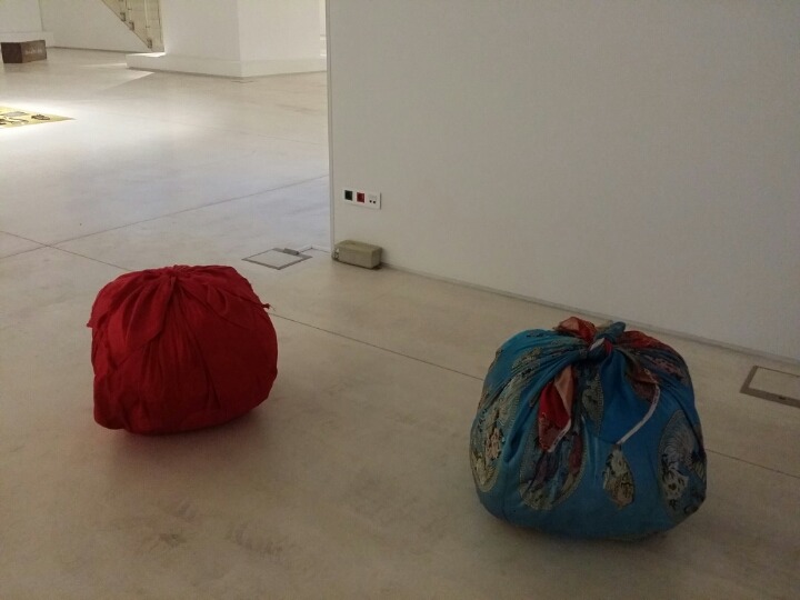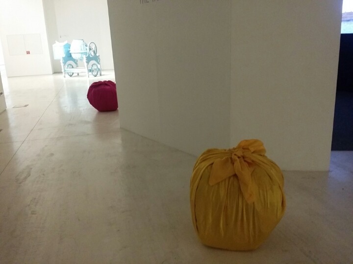 아래 지하층 기획전시실에는 각각의 세명씩 작가들을 묶어 소주제를 두고 기획자의 소개글과 함께 자유로운 설치방법으로 전시하고있었다. 그곳에서 한국 아티스트 김수자의 보따리 작품이!!!