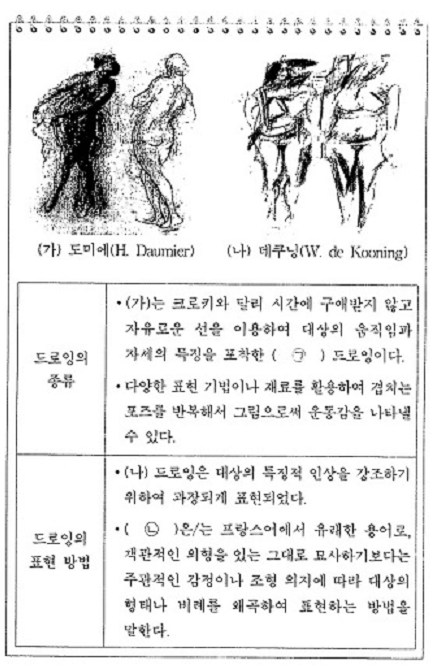 ◦소묘의 제작태도에 따른 방법 분류에 따라 (가)와 (나)를 구분하여 적으시오. ◦소묘 방법 종류 (가)와 (나)의 개념을 각각 서술하시오. ◦소묘 방법 종류 (가)의 장점을 한 가지 서술하시오. | ||