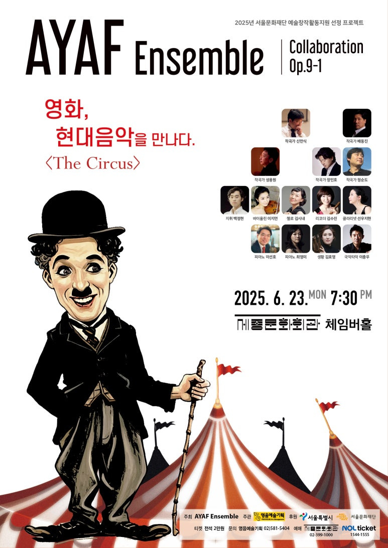 찰리 채플린의 <THE CIRCUS>에 신만식, 정순도, 배동진, 장민호, 성용원 5명의 작곡가가 서양악기와 동양악기의 새로운 소리의 조화를 통해 영화에 맞는 새로운 OST를 작곡하고, 현대음악에 새로운 방향을 제시하며 관객과 소통할 수 있는 현대음악을 만들고자 한다.