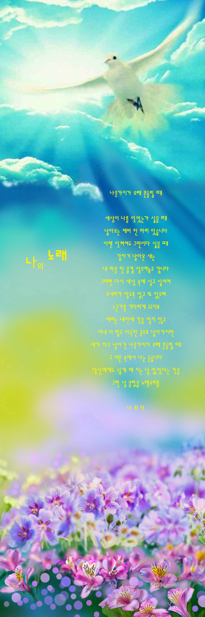 살아가면서 버려서는 안 되는 꿈과 희망을 우리에게 안겨 주고픈 나 시인.