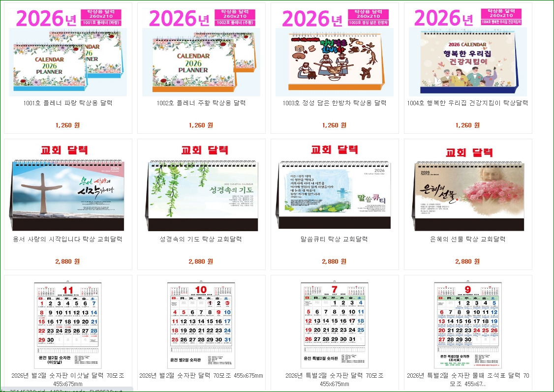 [달력 제작] 카렌다, 2026년 신년 달력 추천 상품, 독판달력, 인쇄전문, 기업 학교 사업체 브랜드, 기념품 판촉물 홍보물 단체선물