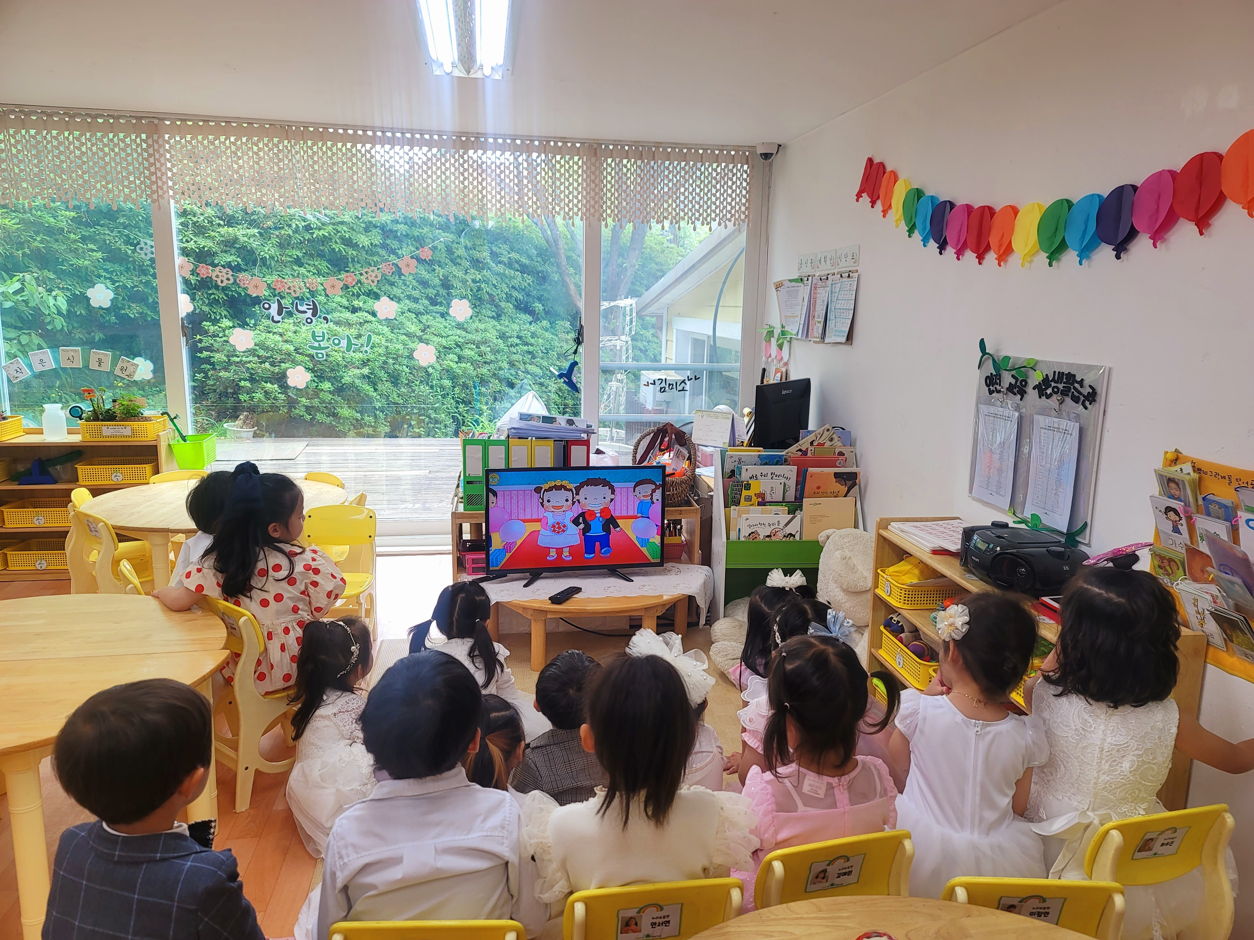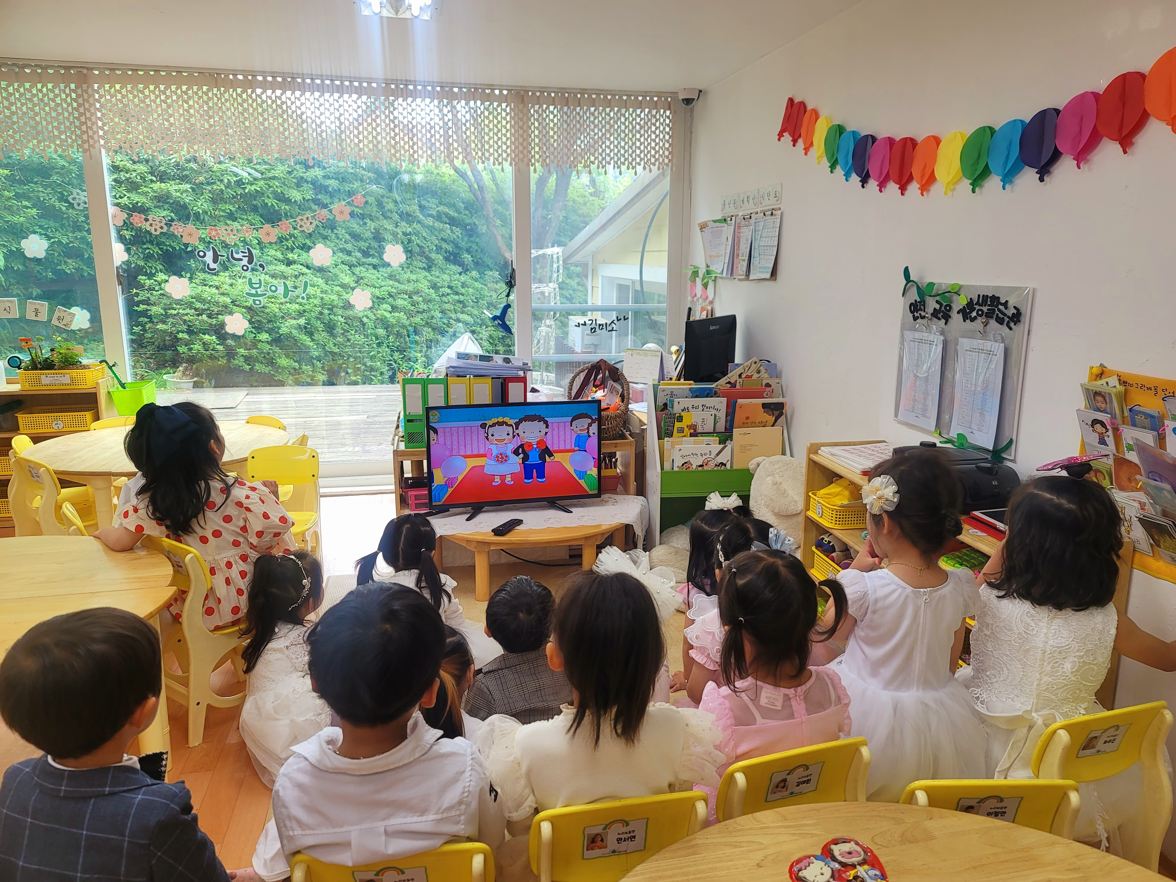 마당에 나가 꽃구름반 동생들과 함께 신랑신부 행진도 경험해보고,