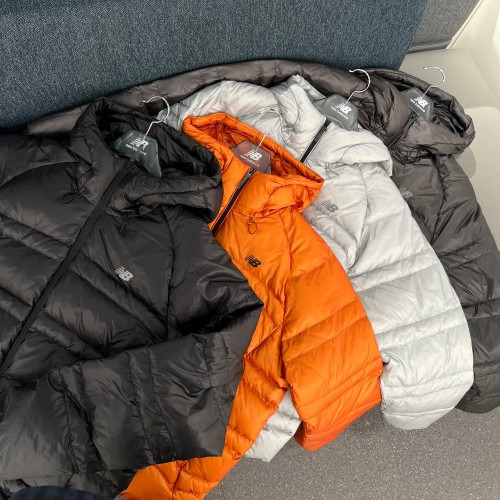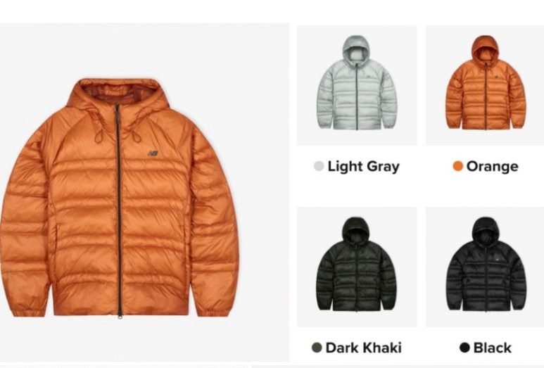 뉴발란스 경량패딩 UNI 플라잉 77 구스다운 라이트 그레이 블랙 오렌지 후드 자켓 : 썬더슈터