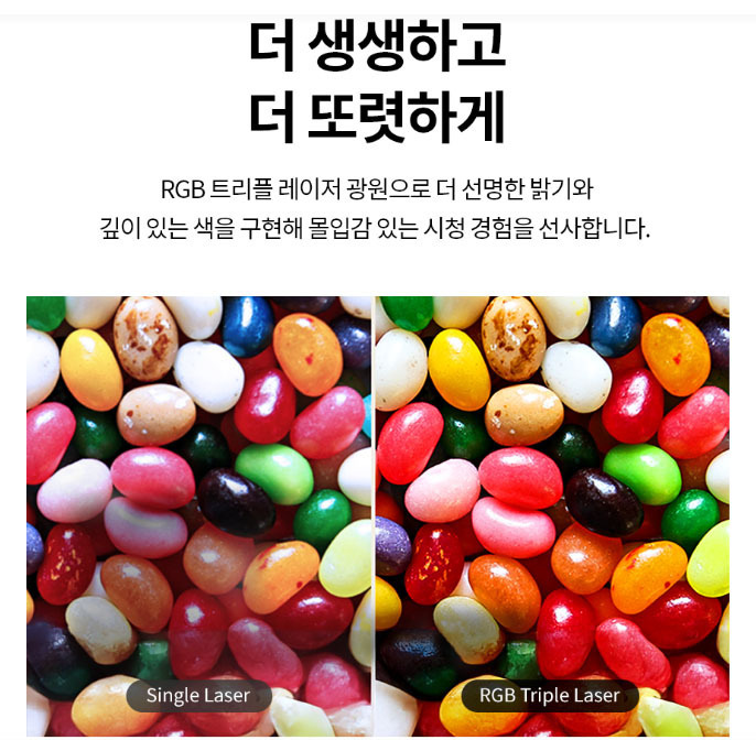 RGB 레이저 광원: RGB 레이저 광원을 적용하여 더욱 선명하고 깊이 있는 색상을 구현합니다.