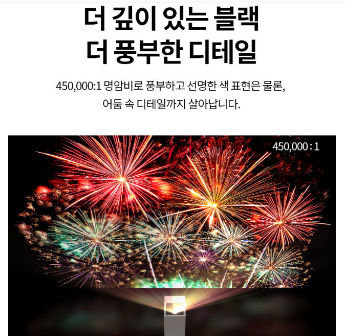 명암비: 450,000:1의 높은 명암비를 지원하여 어두운 부분과 밝은 부분의 디테일을 뚜렷하게 살려줍니다.