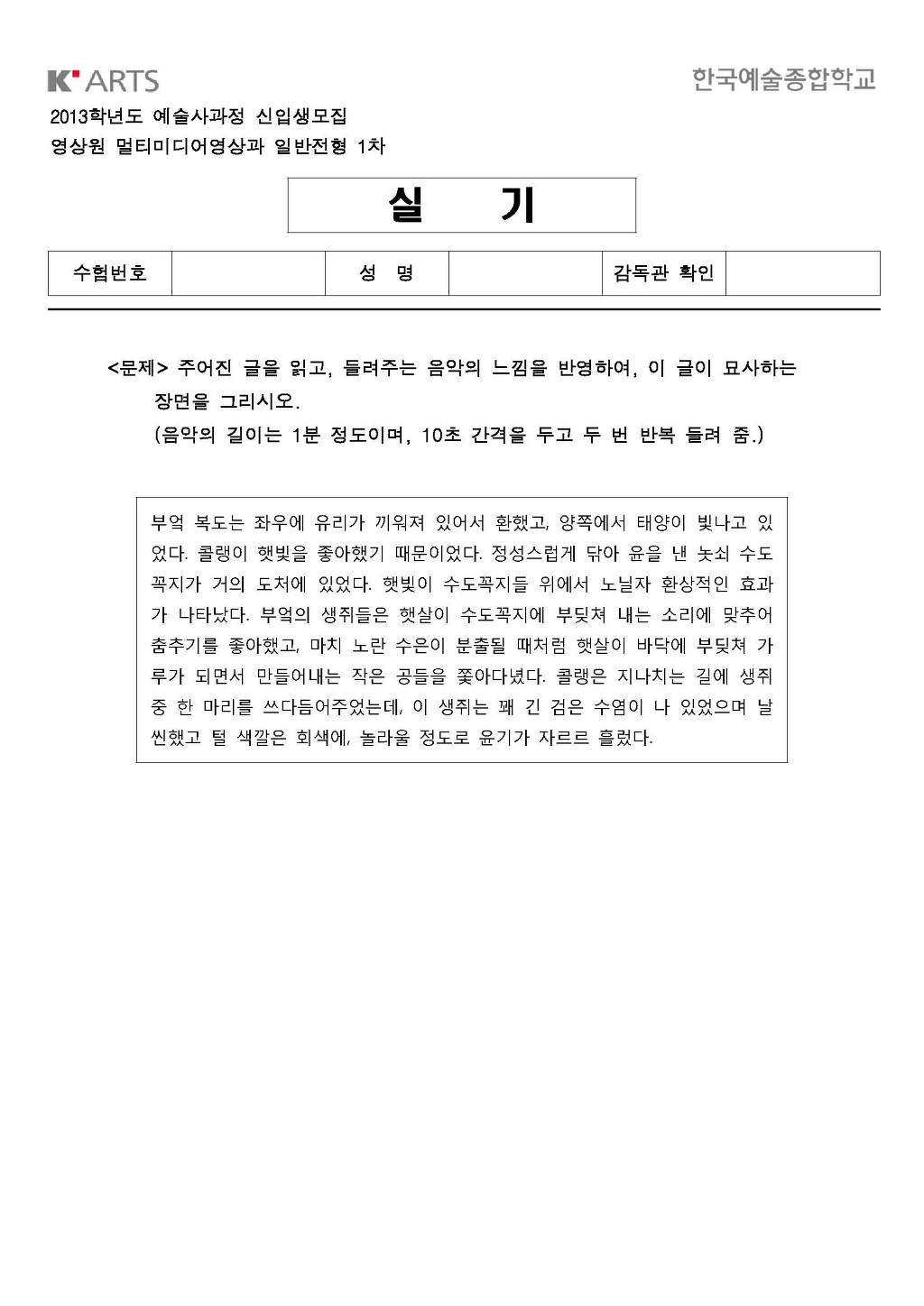 멀영과의 실기시험은 항상 음악이 등장한다는 것 잘 아시죠? 제가 판단할 때 한예종의 실기시험은