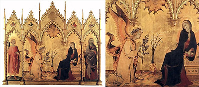 시모네 마르티니 [수태고지](시에나 대성당의 제단화) 1333년, 우피치 미술관(왼쪽), 세부(오른쪽)