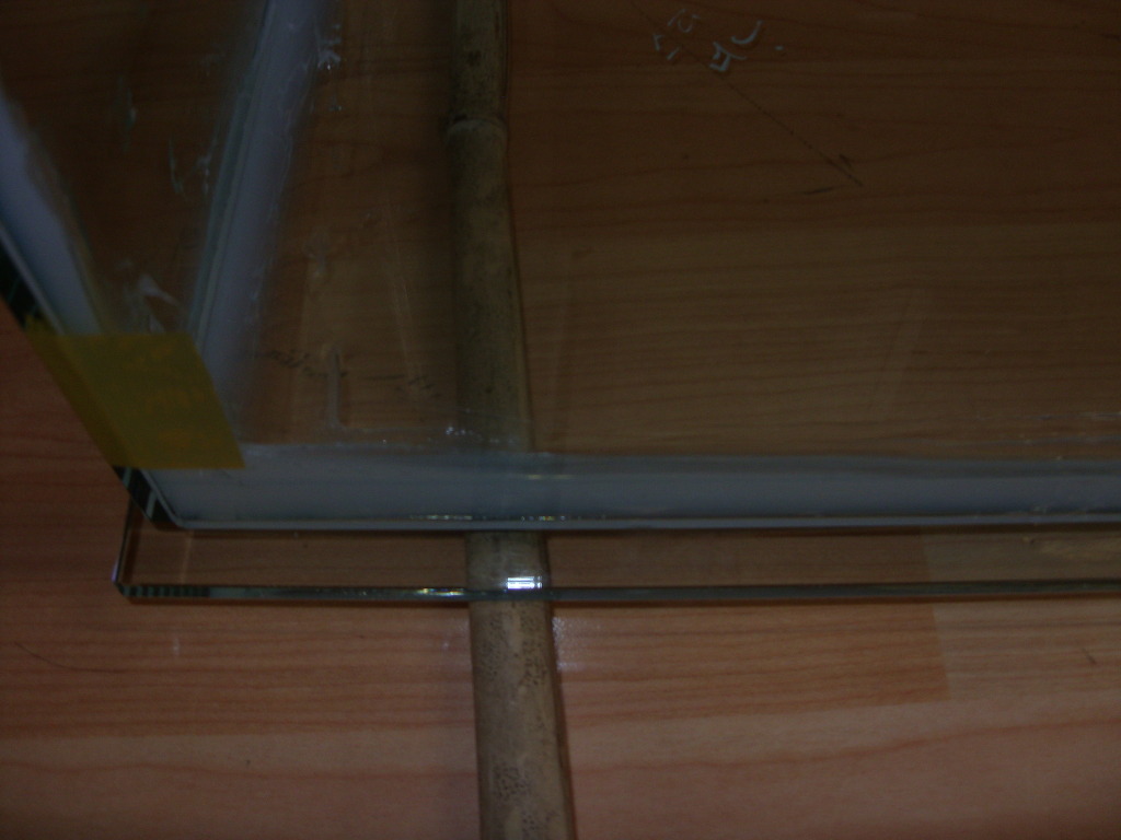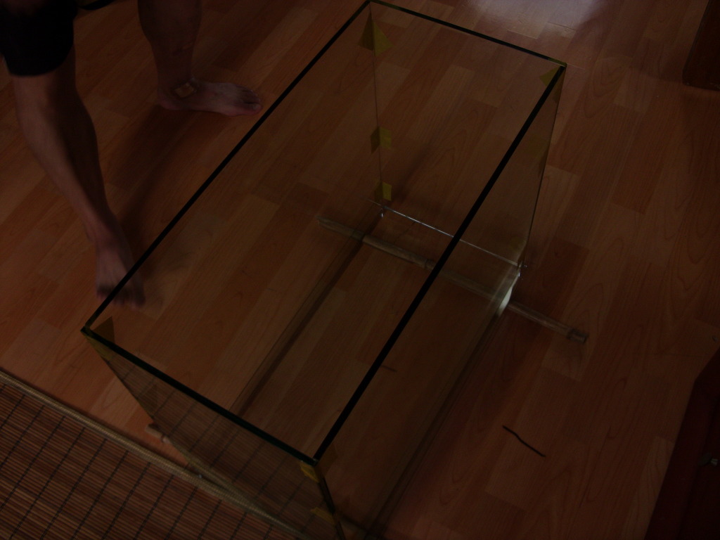 유리를 세운뒤 양끝모서리를 테이프로 고정을 시켜주세여.