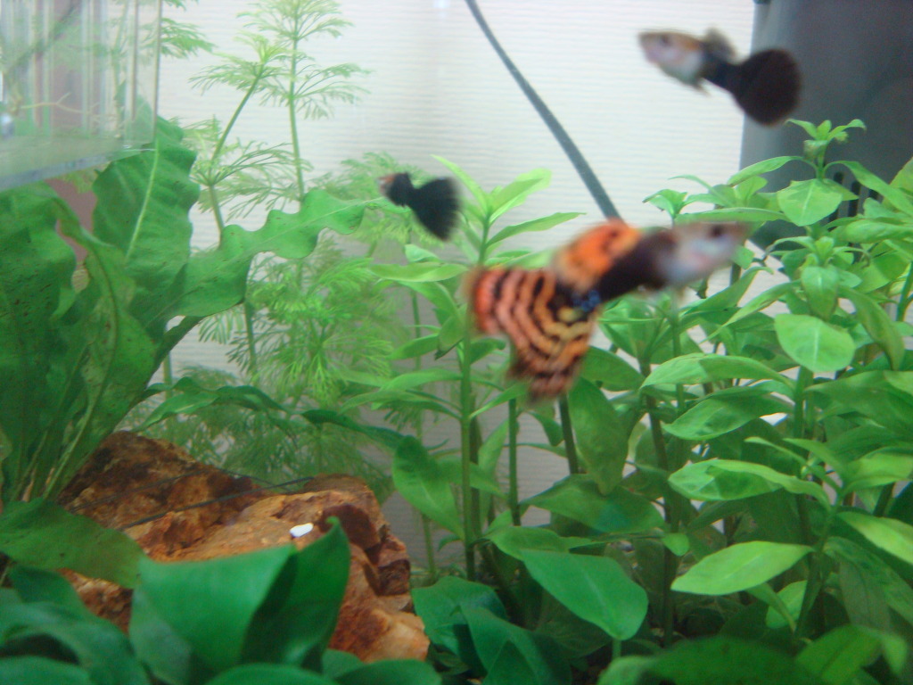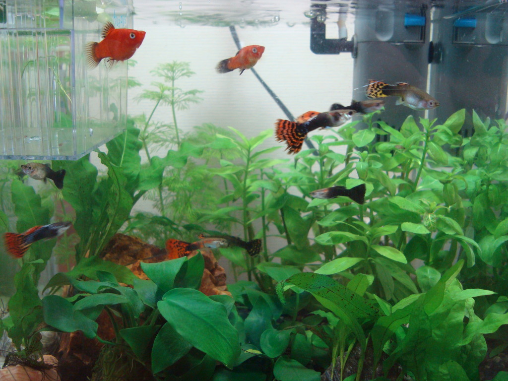 현재 1자짜리 자그마한 어항에 플래티암놈2마리.구피 암놈3마리 숫놈5마리를 키우고 있어요.