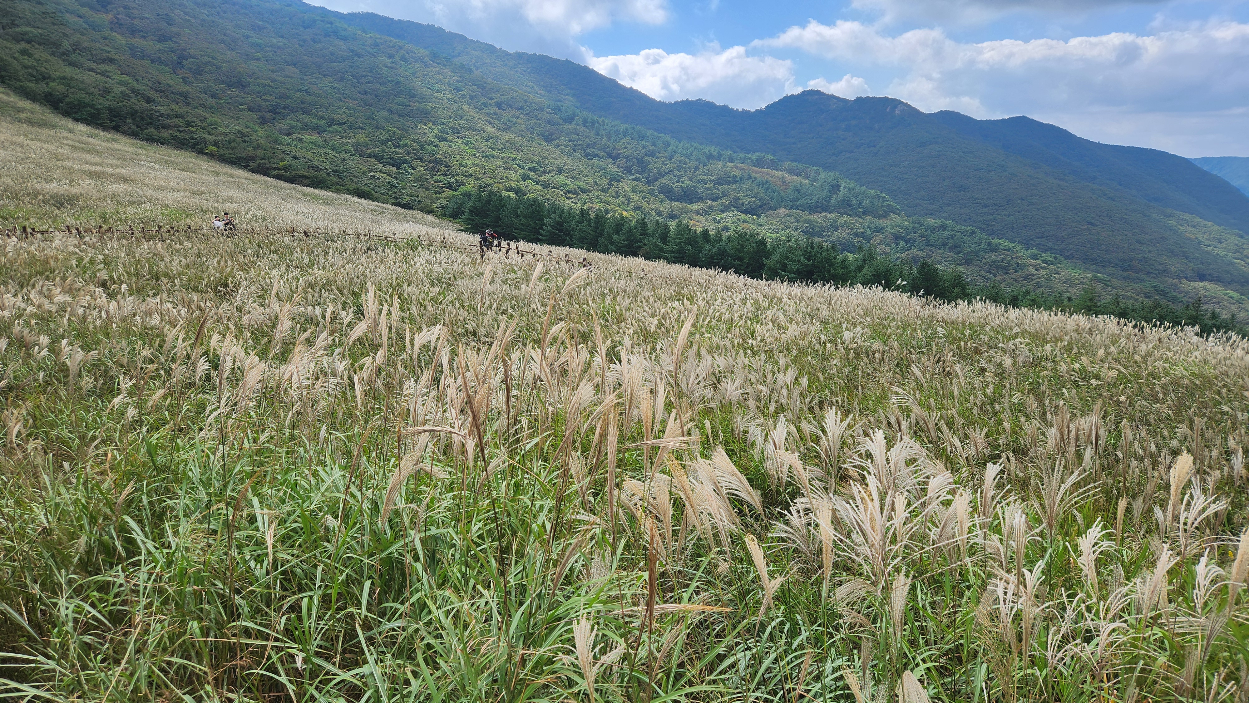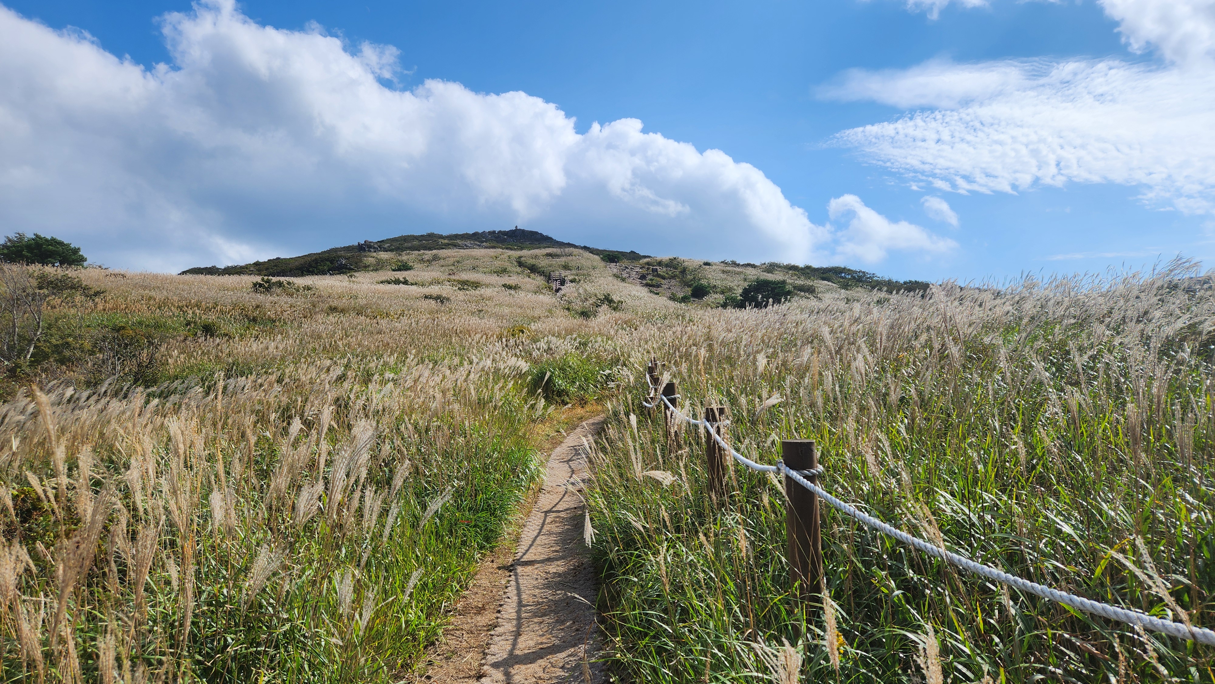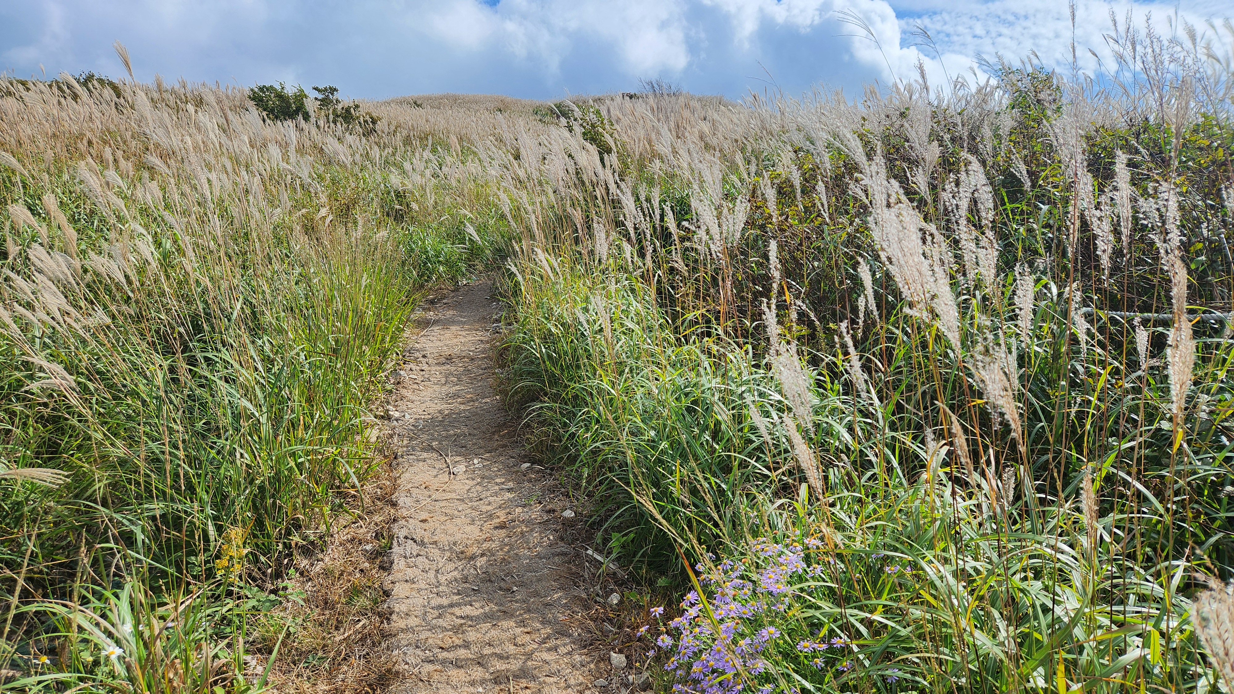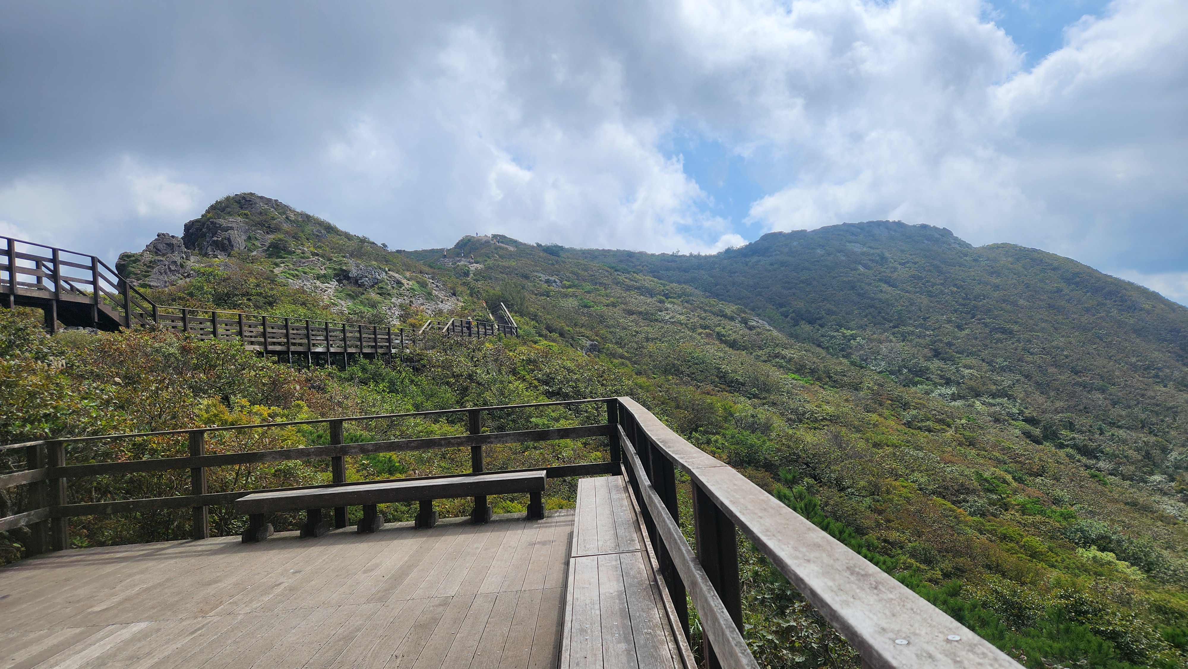 | 영축산을 먼저 오를까...간월산을 먼저 오를까... 고민히다 내려와 차편이 편한...간월산을 먼저 향한다... 간월산에서 내려보니 역새가 안핀 것 같이 보였는데... 아니다...내려와 보니 한창 만개돼...좋다... 신불산오르는 테크와...신불재에서... 간월산 오르는 테크길 공사가 진행중이다... 그런데 우리는 이상하게도 테크길보다... 임시로 만든 길이 더 좋다... |