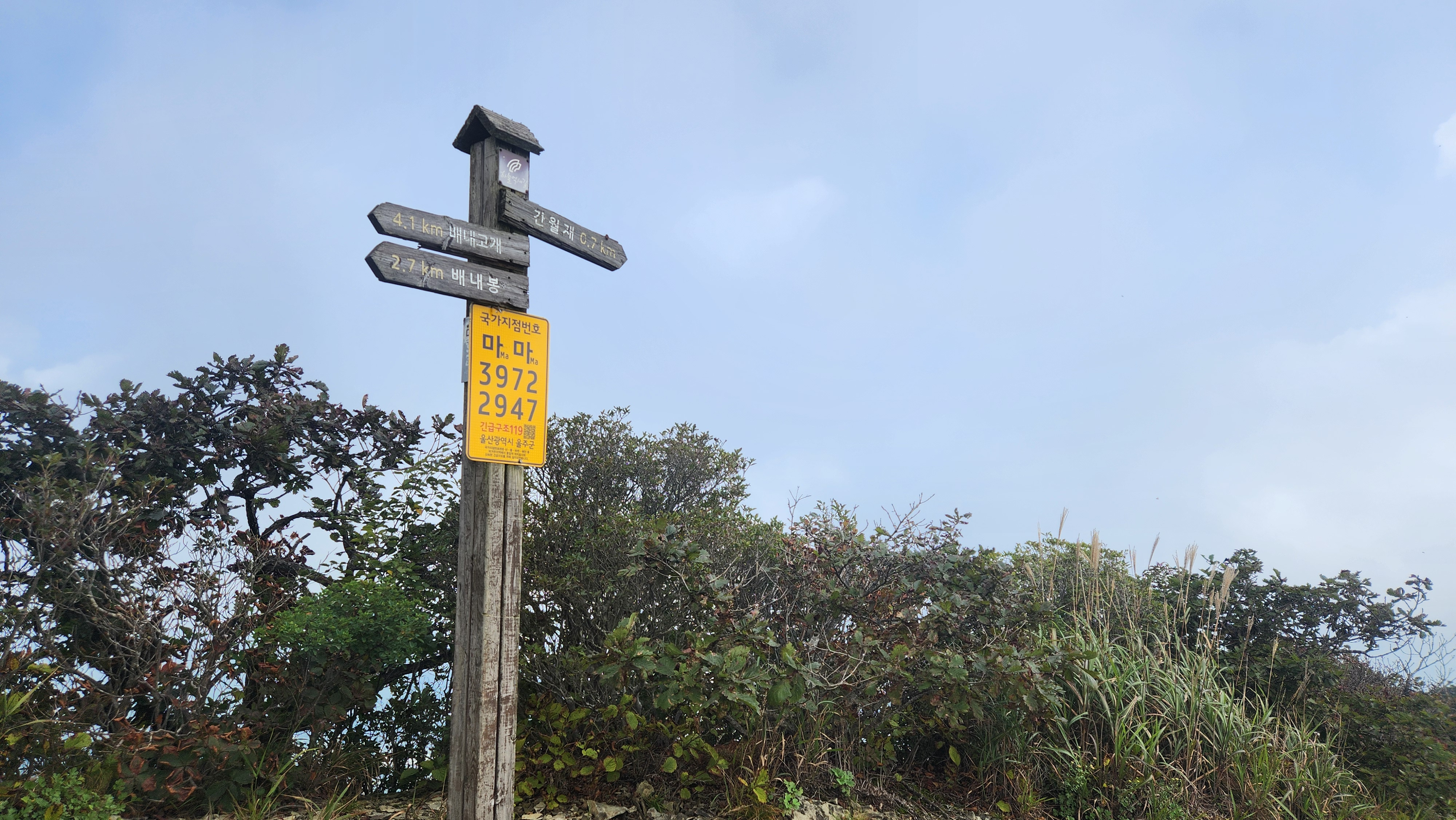 | 일 시 : 2025년 9월 27일(토) 기상상태 : 흐림 산 행 지 : 경남 양산 구 간 : 배내고개( 정상)정류장~배내봉~간월산~간월재~신불산~신불재~영축산~축서암~통도사(신평)버스터미널 |