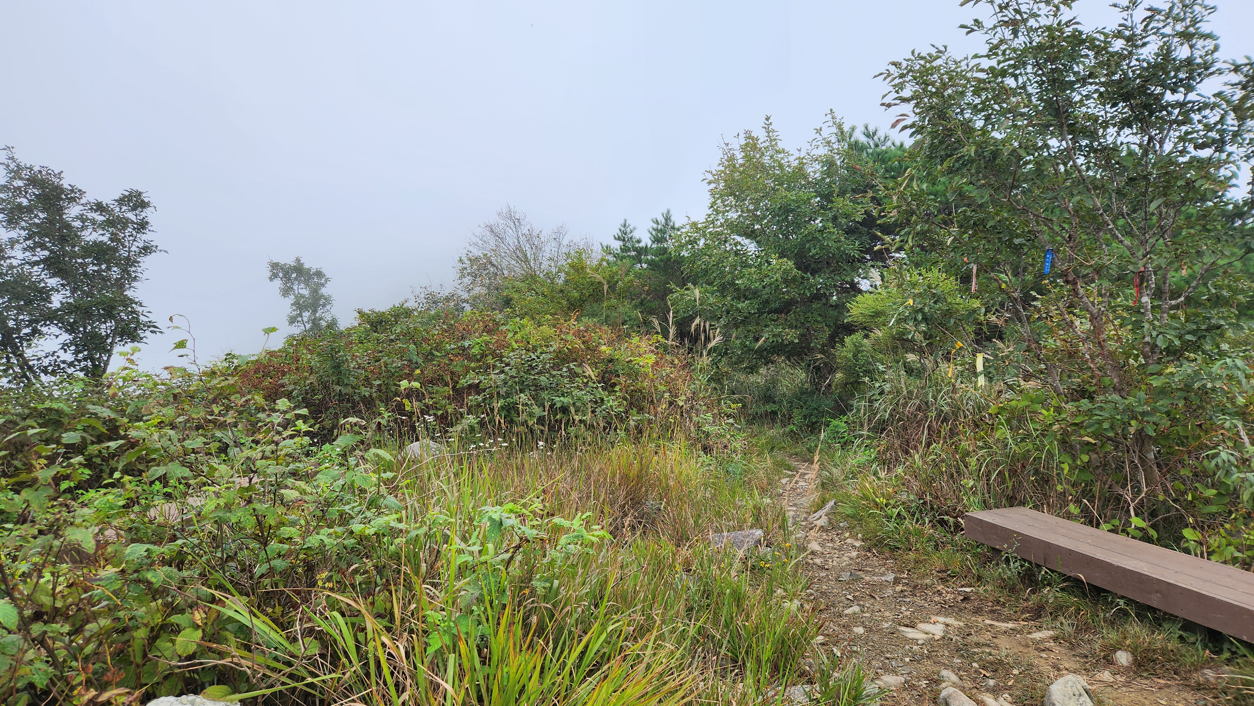 | 10:15 - 배내봉(966) 정상석을 터치하고 돌탑을 본다...이정표를 보며 출발... 10:17 - 안개낀 능선을 본다... 10:20 - 이정표-간월산 2... 10:34 - 시그널따라... 10:46 - 벼랑으로 경치를 본다... 10:50 - 벼랑길... 10:58 - 구조목능선...전망을 본다... 11:04 - 내려오며 간월산을 본다... 11:07 - 안부...선짐이질등 안내판...산행인들이 간식을 먹으며 휴식... 11:29 - 이정표-간월산 0.3... |