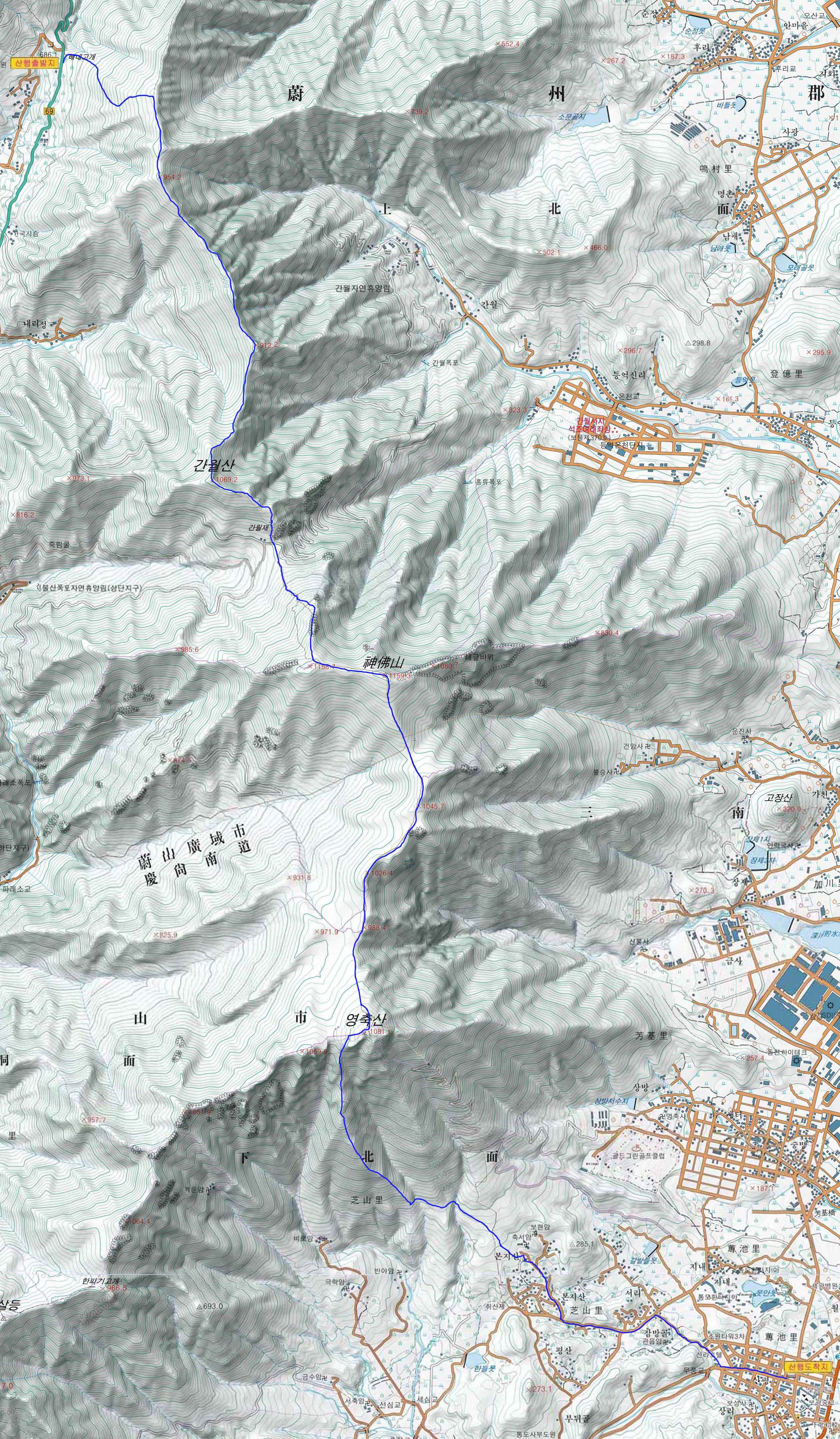간월 신불 영축 : [배내고개( 정상)정류장~배내봉~간월산~간월재~신불산~신불재~영축산~축서암~통도사(신평)버스터미널]