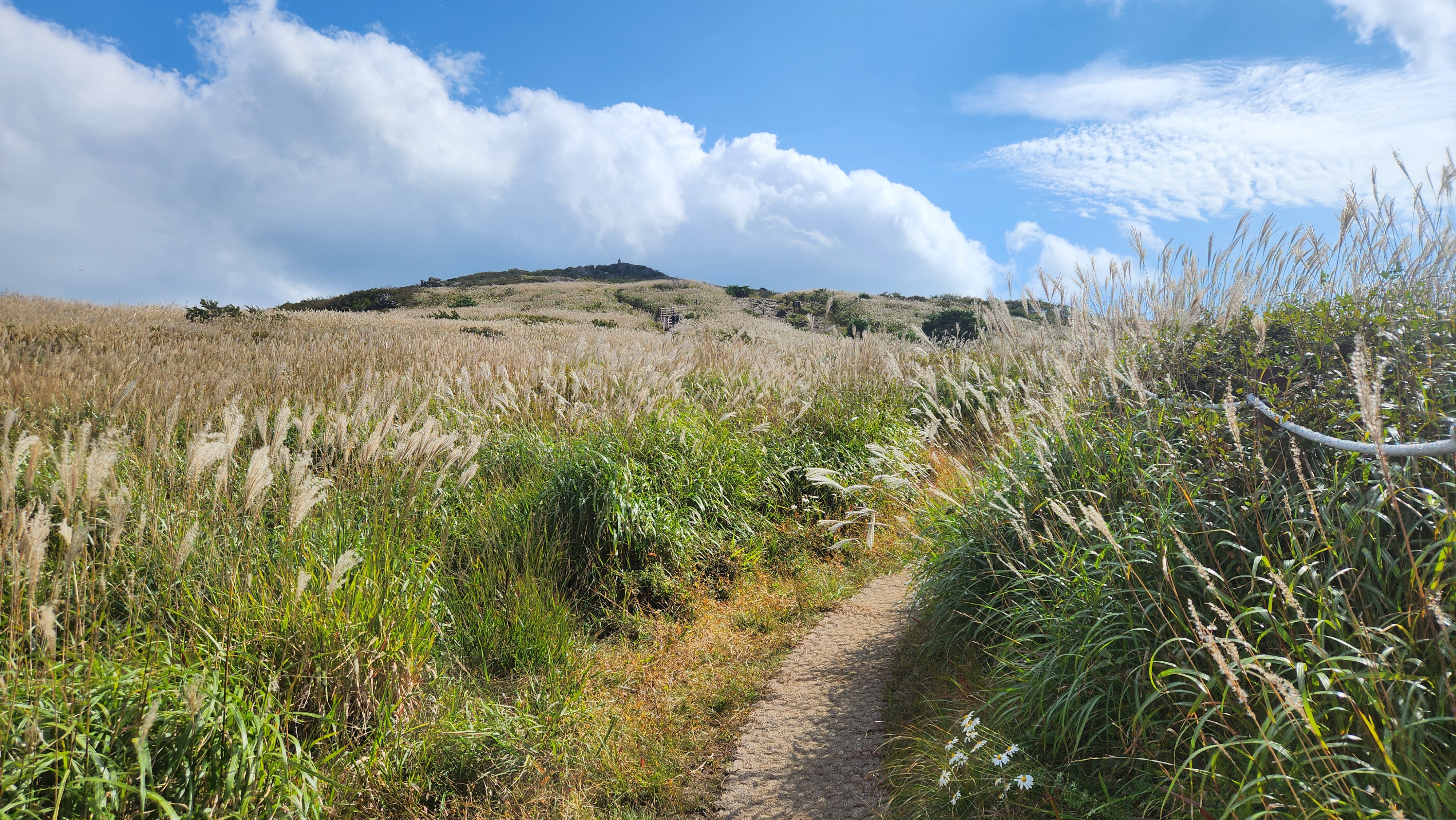 | 12:40 - 간월재 의자마다 산행인들이 앉아 식사중...기다려 간월재 돌탑과 표지석을 촬영... 12:44 - 신불산쪽으로 오르며 억새를 본다...장관이다... 12:50 - 뒤돌아 간월재를 본다... 13:01 - 등산로 공사중 우회... 13:14 - 공사중으로 등산로 우회 끝... 13:16 - 전망대에서 전망...간월재쪽 신불산쪽... 13:25 - 바위능선...신불산을 본다... 13:28 - 이정표-신불산 0.5... |